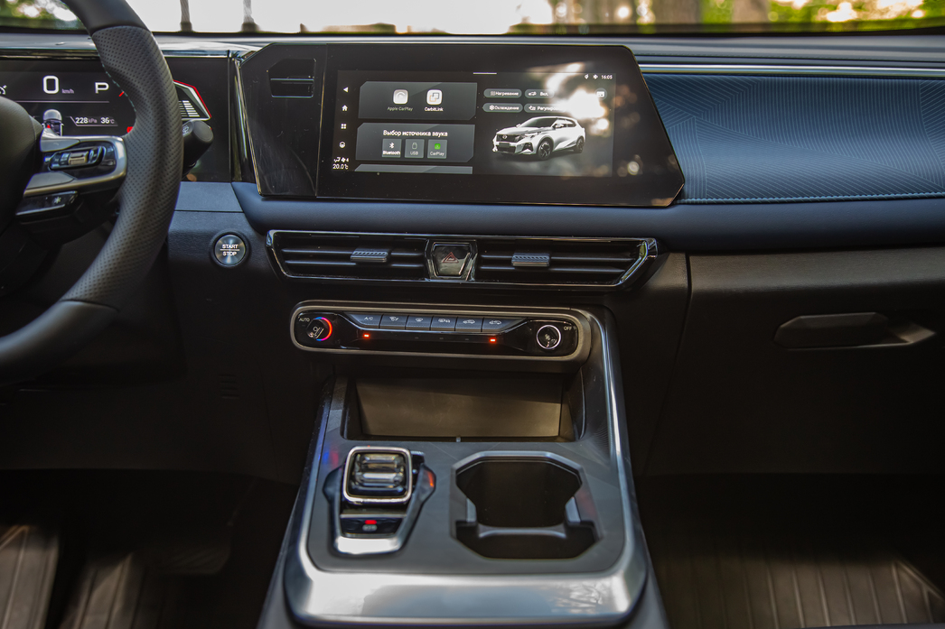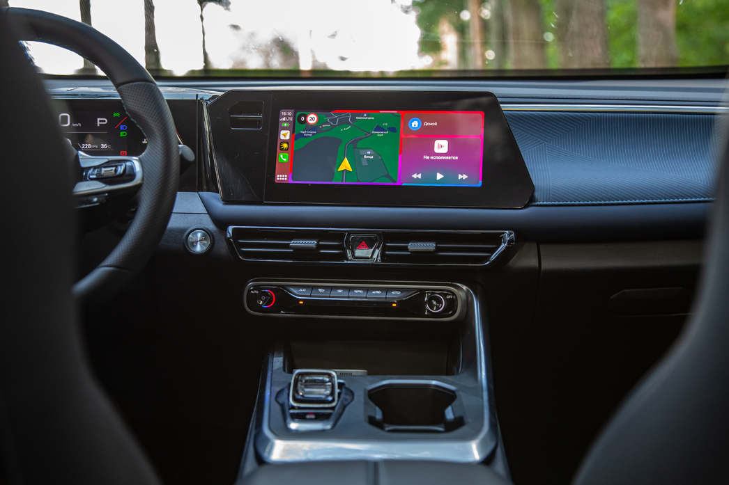 На салон, к слову, запала хватило: одни синие, в цвет кузова, ремни чего стоят! Пусть экранов всего два — рабочий, который с приборами, и мультимедийный, но оба постоянно задействованы. И, о чудо, Apple Carplay полновесный, а не китайские «зеркала». Android Auto тоже есть. Воистину, подумали да позаботились, пусть и «отваливаются» телефоны, по старой китайской привычке, постоянно.