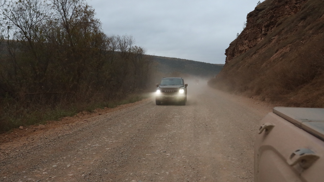 Асфальт заканчивается. Сбрасываем скорость до 80, 70 км/ч. Со временем накапливается усталость, глаза «замыливаются», не замечая выпирающий на дороге острый камень или промоину. Машине достается сильнее. Но впереди еще полторы-две сотни километров по бездорожью.