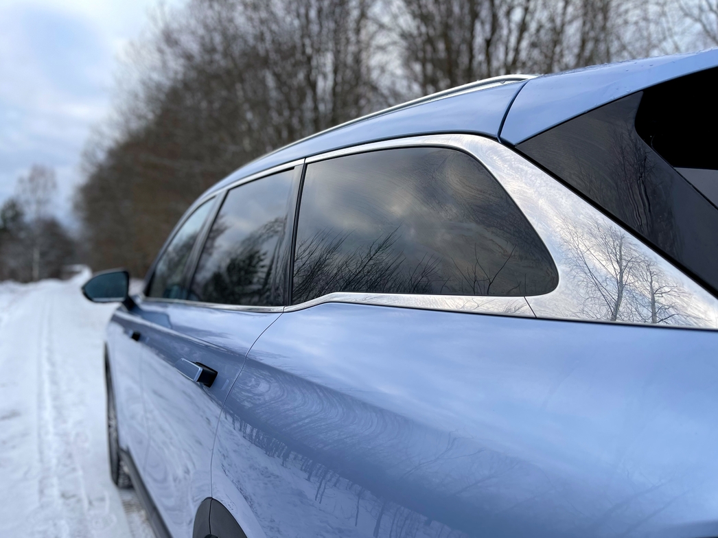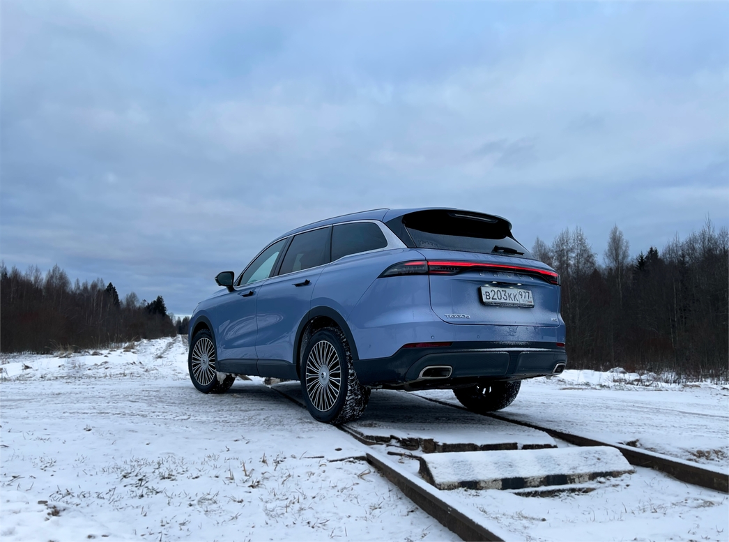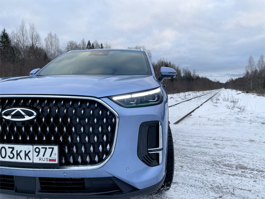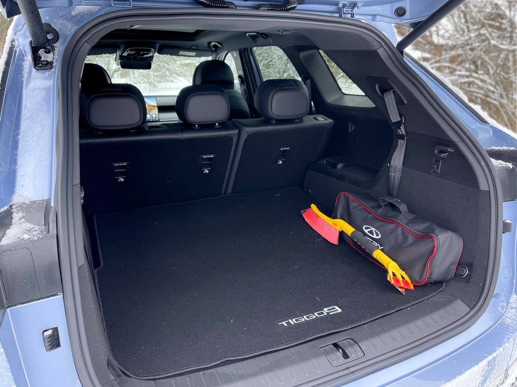 Также стоит отметить выдвижные ручки дверей — их электропривод был усилен специально для России, чтобы они лучше сопротивлялись обледенению. Колёсные диски диаметром 20 дюймов с необычным рисунком — это, пожалуй, самый яркий элемент дизайна. Tiggo 9 выглядит так, что, если и привлекает внимание, то не потому, что пытается, а потому что он просто хорошо сбалансирован.