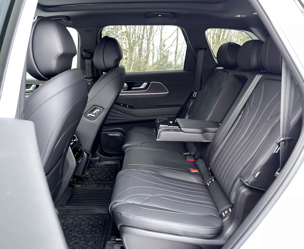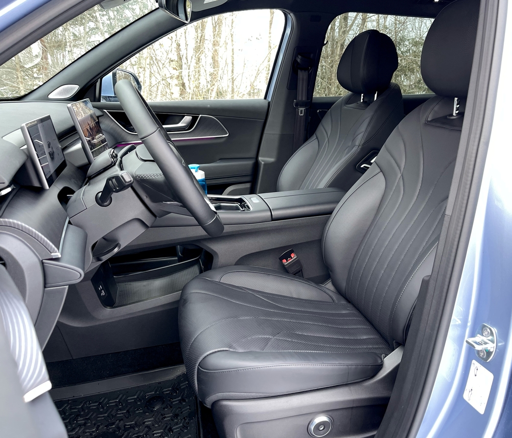 Салон Chery Tiggo 9 разработан с акцентом на комфорт водителя и пассажиров. Передние кресла мягкие, отделаны приятной на ощупь натуральной кожей. На первом ряду предусмотрена вентиляция, массаж и подогрев — всё работает без нареканий. Подушка сиденья достаточно длинная, чтобы обеспечить поддержку для ног на длительных расстояниях. Однако хотелось бы большего диапазона регулировки руля по вылету — приходится подвигаться к «баранке» ближе, чем хотелось бы.