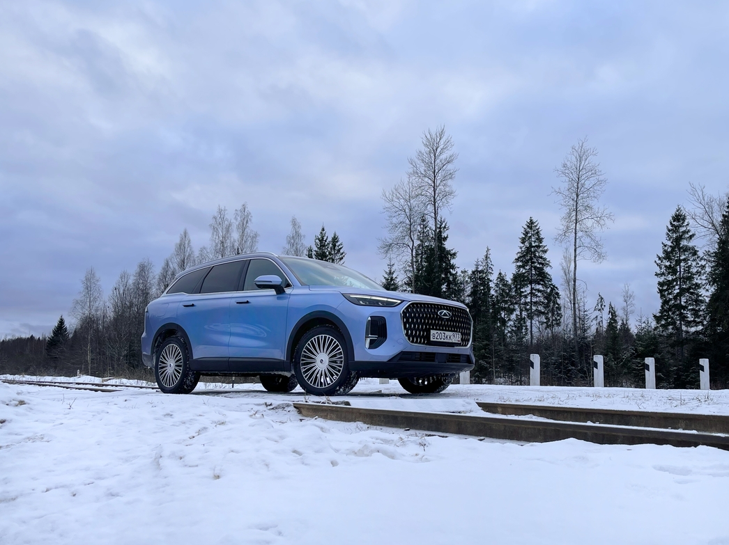Внедорожные пресеты друг от друга практически не отличаются. С разбитой грунтовкой Tiggo 9 справляется уверенно, но на серьёзное бездорожье лучше не забираться — несмотря на заявленный дорожный просвет 200 мм, диски и бамперы окажутся в зоне риска.