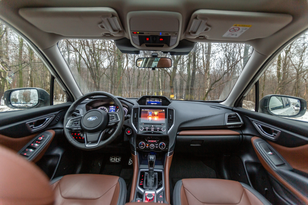 В чем же феномен этого и всех остальных «Субару»? За что такие деньги, которые, несмотря ни на какие кризисы, исправно платятся? Новых Forester на дорогах немало! Салон машины встречает тяжелой дверью с дополнительным фиксатором понизу — тут про безопасность подумали. Кресло — удобное, с длинной подушкой, настроилось за три секунды и две недели доставляло только радость.
