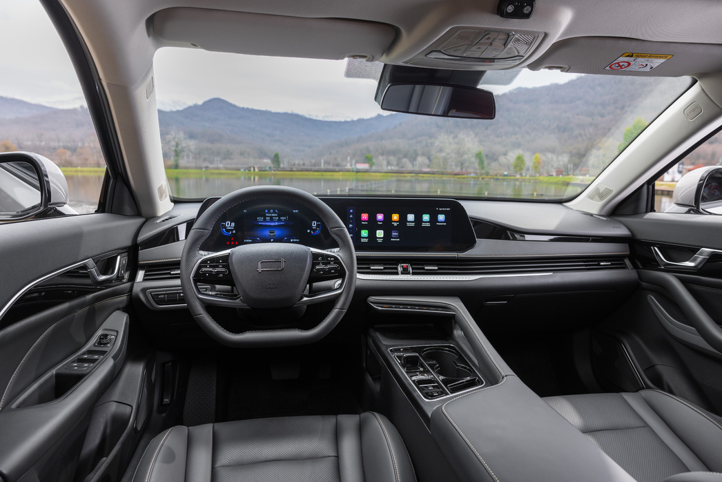 В салоне тоже умудрились не наворотить: цыганского шика, коим славятся многие авто из КНР, не видно, традиционные уже два дисплея слились воедино, далее все вежливо, если не сказать — строго. Кресла, к слову, обладают чарующе длинной подушкой, что само по себе — сверхопция для «китая», но подогрев — только спереди.