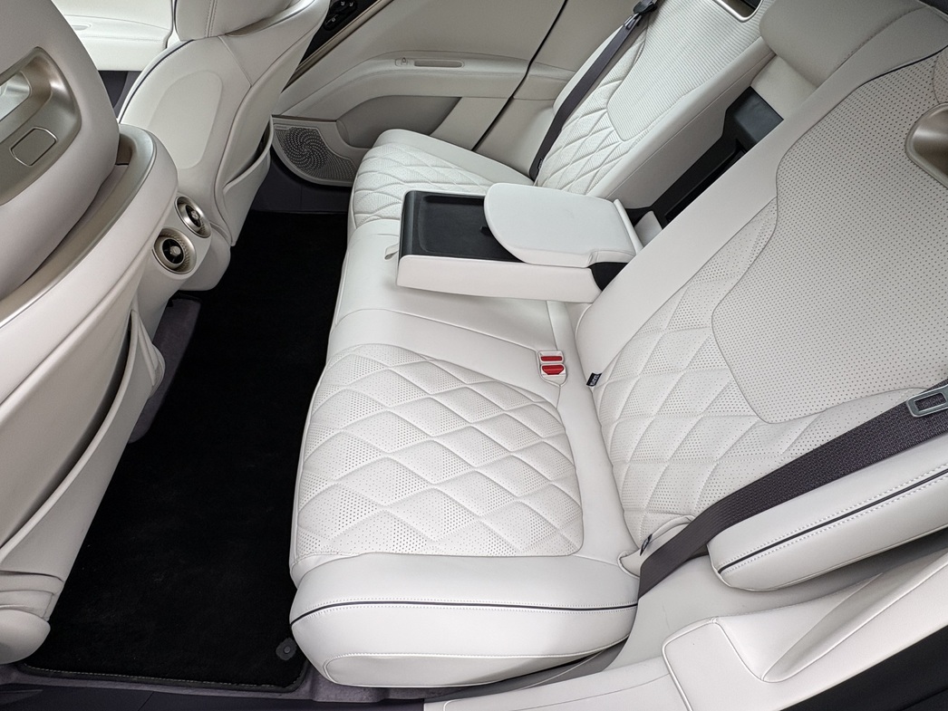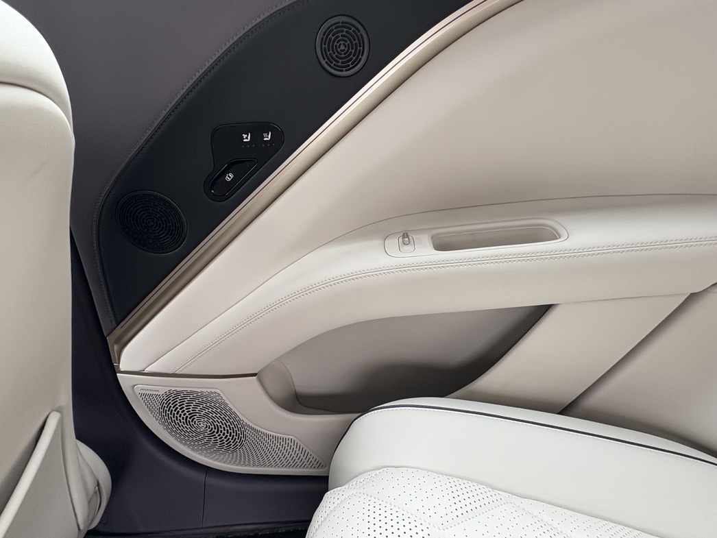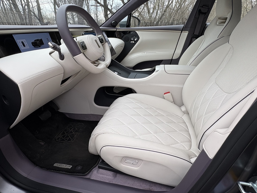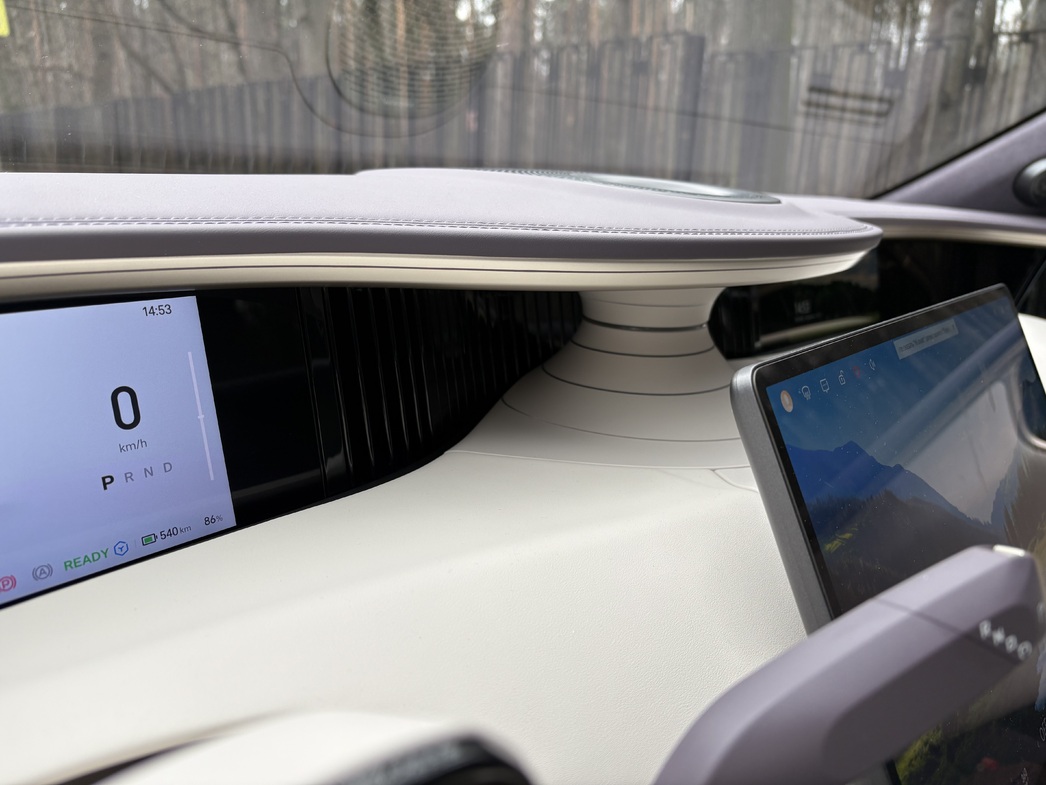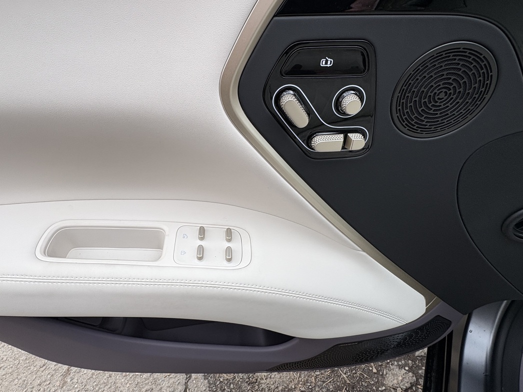 Удобно устроиться за рулем электрокара удастся не всем. Как по мне, так подголовник немного давит на затылок, а спинка сиденья слишком уж мягкая. Но зато есть массаж, вентиляция и подогрев — всерьез жаловаться на эргономику, честно говоря, грех. К тому же водительское кресло запоминает настройки, а при выходе — отъезжает назад, освобождая пространство.