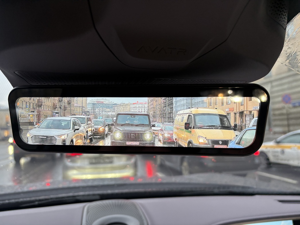 Сразу бросилось в глаза зеркало заднего вида. Заднее стекло «Аватра» настолько узкое, что в традиционном виде пользоваться им бесполезно, хотя и можно. Поэтому предусмотрен цифровой режим: экран с картинкой с камеры. Сначала непривычно, но потом очень даже нравится: обзор просто отличный, особенно в темноте — ночью видно, как днем.