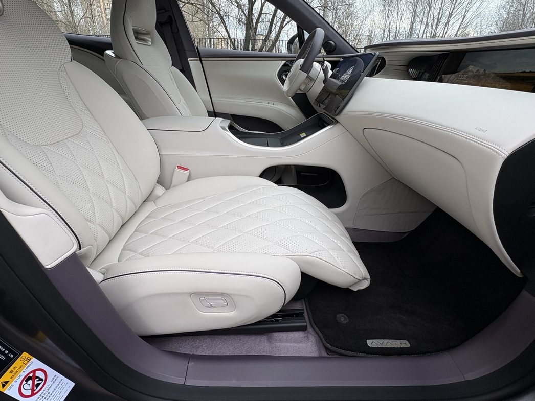 И если уж мы заговорили про стиль, то Avatr 11, на мой взгляд, чуть ли ни первое транспортное средство из Китая, где использование огромного экрана не вызывает чувство неуместности своими размерами и инородностью. Он, вкупе с водительским и пассажирским дисплеями, более чем элегантно вписывается в пространство передней панели, украшенной загадочной «воронкой», подчеркивая те самые минималистические устремления авторского коллектива в оформлении внутреннего пространства машины. Пусть, повторю, и не всем такой подход в «автоискусстве» по душе, но законы жанра соблюдены на все сто.