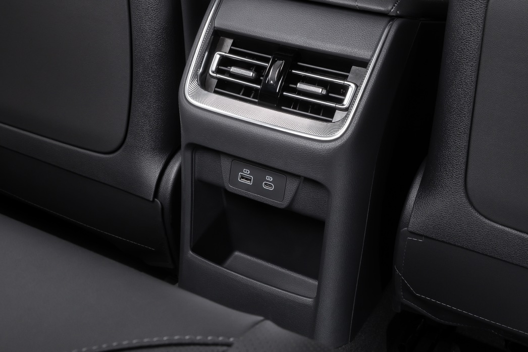 Ниспадающая крыша отъедает у них драгоценные сантиметры, а подголовники сидений дружески обнимаются со шторкой багажного отсека. Климат-контроль? Только для передних членов экипажа. Развлечения для тех, кто за ними? Раздельные дефлекторы вентиляции, шикарный центральный подлокотник с держателями для посуды, USB-разъемы и колонки аудиосистемы — больше никаких излишеств, граждане. Впрочем, даже нерегулируемые спинки сидушек вполне эргономичны и превращают поездку на заднем сиденье почти как в лимузине. Хотя и без шампанского в подстаканниках — но это уже мелочи.