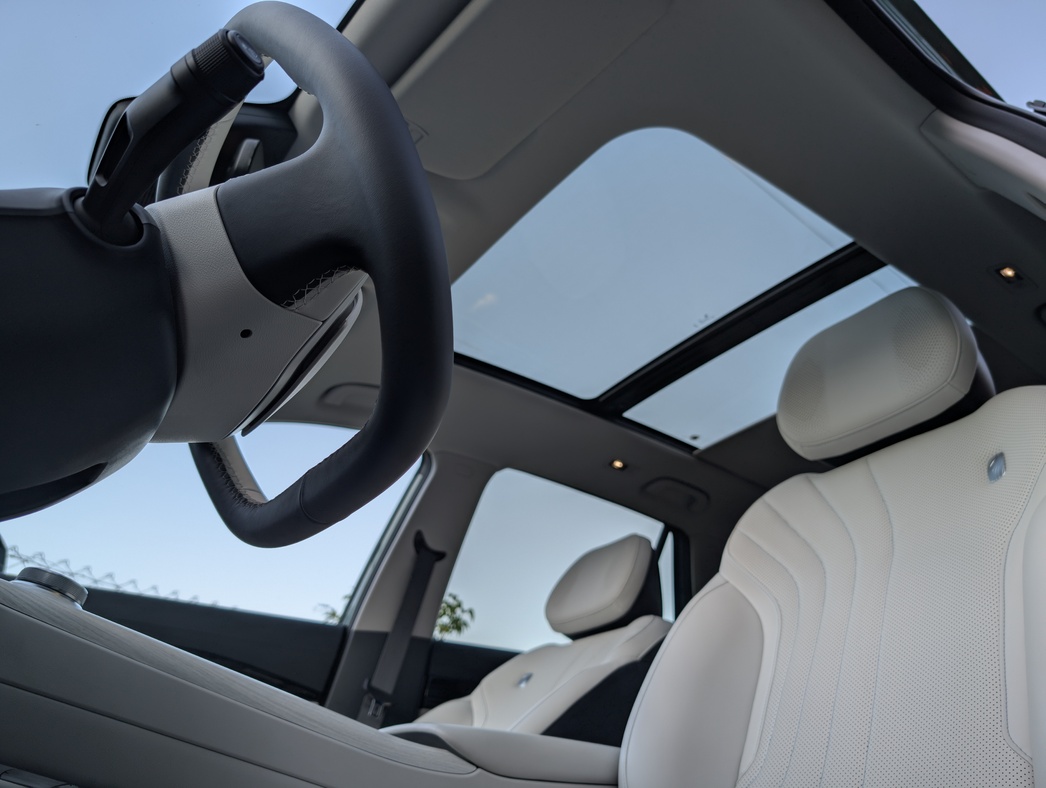 Зато если сложить задние сиденья (спойлер: они складываются почти ровно), можно получить целых 1877 л. Правда, зачем столько места в машине, которая вряд ли уедет дальше дачного участка без подзарядки — вопрос философский.