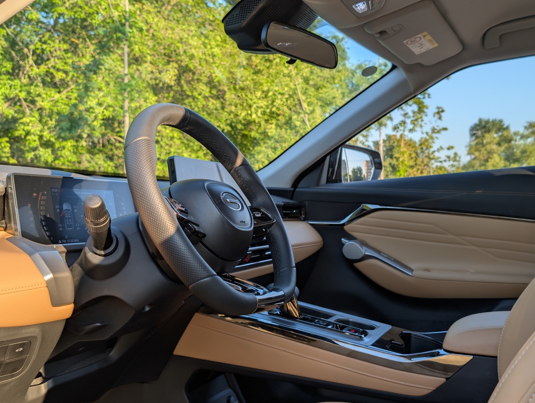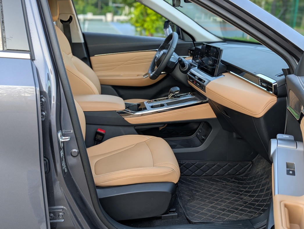 Водителю, конечно, повезло больше: электрорегулировки с шестью направлениями и памятью позиций позволят расположиться удобно человеку любого телосложения. Зато задний ряд — настоящий сюрприз: просторно как в минивэне. Пол абсолютно ровный. Даже среднее место не выглядит наказанием для провинившегося чем-то седока: сидишь чуть выше, но без ощущения тесноты, разве что потолок чуть ближе, чем хотелось бы.