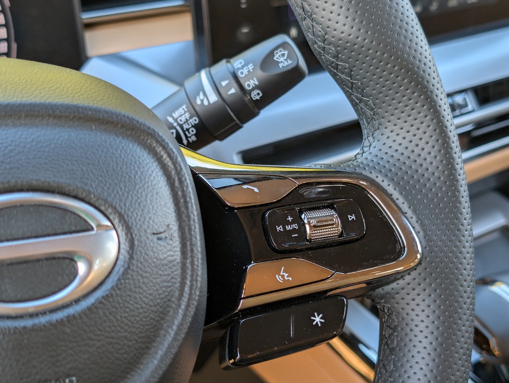 Центральный 10,1-дюймовый дисплей встречает чистотой графики и логичным меню. Правда, его реальная рабочая площадь кажется скромнее из-за сенсорных ползунков громкости и обдува, встроенных в толстые боковые рамки. Зато удобно: палец сам находит их без лишних движений.