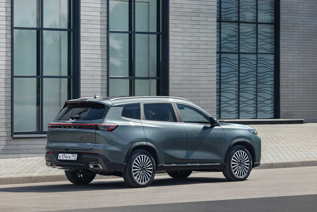 Но машина совершенно непохожа на «донора» и выглядит, на мой взгляд, куда актуальнее предшественника. Сохранив его архитектуру, кроссовер российской сборки получил абсолютно иные кузовные панели, включая решетку радиатора и освещение. А передок «восьмерки» с разнесенной на два этажа светодиодной оптикой так и вовсе бросает вызов привычным уже нам китайским SUV, похожим друг на друга как братья-близнецы. Необычное расположение источников света — поворотники и ходовые огни в верхнем блоке, а вставшие друг над другом фары ближнего и дальнего света внизу — придают модели индивидуальность, и я бы даже сказал — самость.