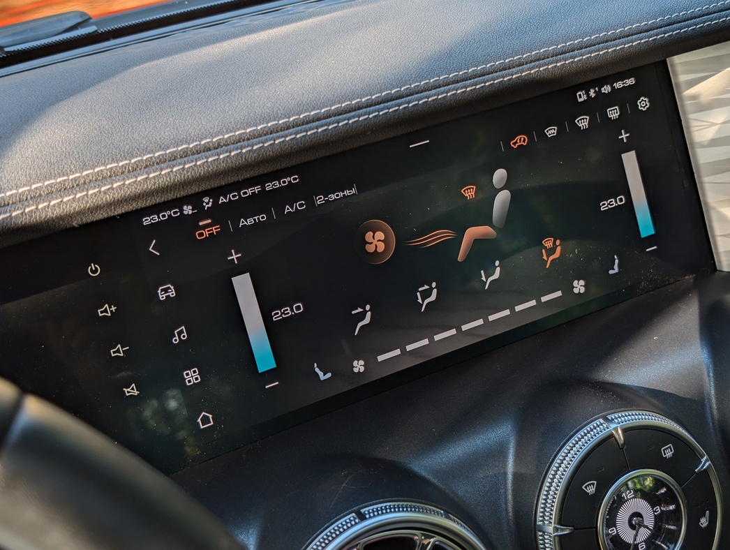 Итак, общее состояние салона: ни выраженных потертостей на руле и сиденьях, ни царапин на панелях. Следы эксплуатации, разумеется, присутствуют — журналисты не щадят тестовые машины — но все в рамках естественного. «Да какие могут быть повреждения на таком скромном пробеге?» — быть может, спросите вы. Отвечу примером: не так давно мы испытывали авто другого премиального бренда из КНР, и там внутреннее убранство выглядело так, будто машина отслужила пять лет в такси, хотя на одометре не было и 20 тысяч.