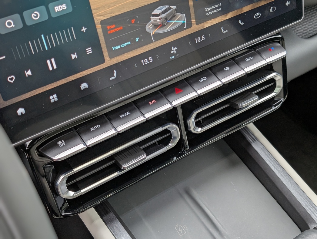 Ключевое и, замечу, чуть ли не единственное актуальное отличие — блок физических клавиш для управления климатом и другими востребованными функциями типа обогрева стекол или включения «аварийки» под основным экраном. Редкость, согласитесь, для современных «китайцев», где за всем этим хозяйством приходится лезть в кладовые мультимедийки. Хотя без погружения в ее недра и тут не обошлось: боковые, например, зеркала иначе не настроишь.