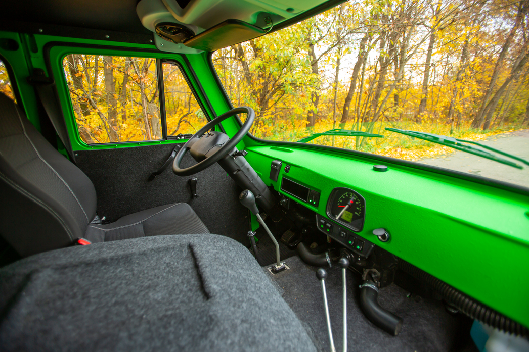 Описывать дизайн, грани, выштамповки и прочую визуальную художественность смысла не видно. Во-первых, каждый человек эту разновидность УАЗа и его итерации видел, во-вторых, не было места красоте в транспортном средстве, которое предназначалось и заказывалось военным ведомством. Задача была — функционал и точка. И «Буханка», несмотря на милую и добрую, безобидно-лупоглазую мордашку, совсем современному автомобилю не свойственную, каких-либо декоративных элементов идеологически не имела.