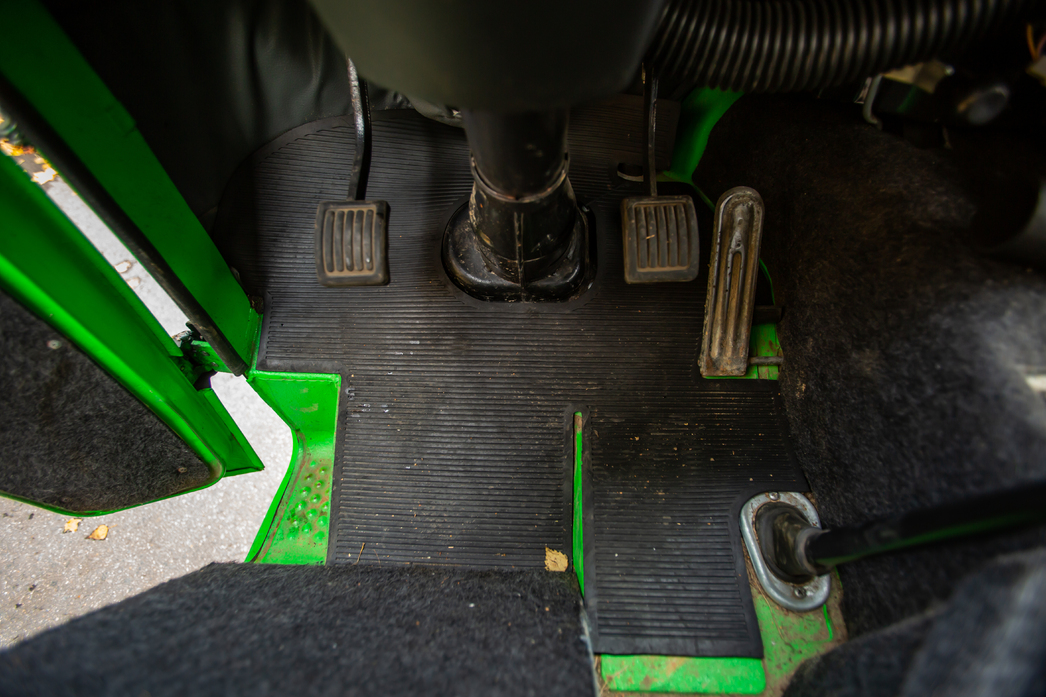 Устроившись в мягком кресле и договорившись с позвоночником, выезжаем. Первые метры самые трудные: и ноги цепляются за высокие относительно пола педали сцепления и тормоза, и голова норовит стукнуться о полку с колонками и магнитолой, прибитую к потолку, и руль, обладающий феноменальным количеством оборотов, имеет весьма сомнительную связь с колесами.