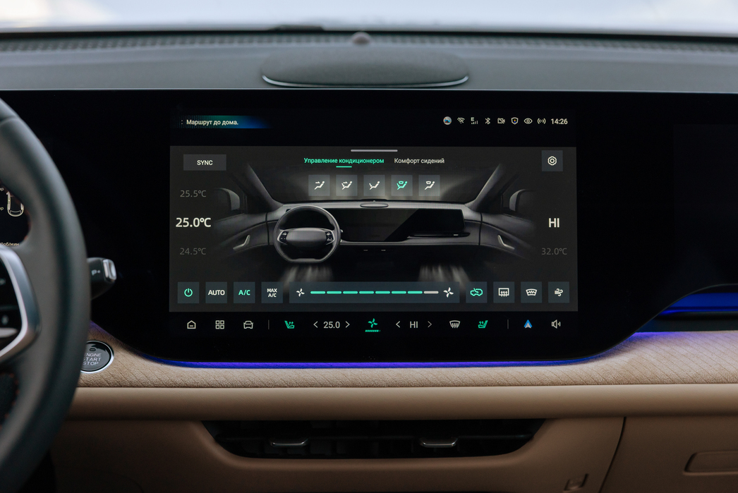А вот мультимедийная система оставила двойственное послевкусие. С одной стороны, имеется «VK Музыка», что для меня, пользователя именно этого стримингового сервиса, очень удобно. С другой — карты на базе «Яндекса» заставляют нервничать. Как уже было сказано, премьерный тест проходил под Мурманском, где глушилки GPS, кажется, уже стали частью местного колорита наравне с северным сиянием. Маршруты сбивались, перестраивались, а однажды карты и вовсе отказались загружаться, оставив нас наедине с интуицией и дорожными указателями. Насколько это проблема самой системы, а насколько — суровой заполярной реальности, сказать сложно.