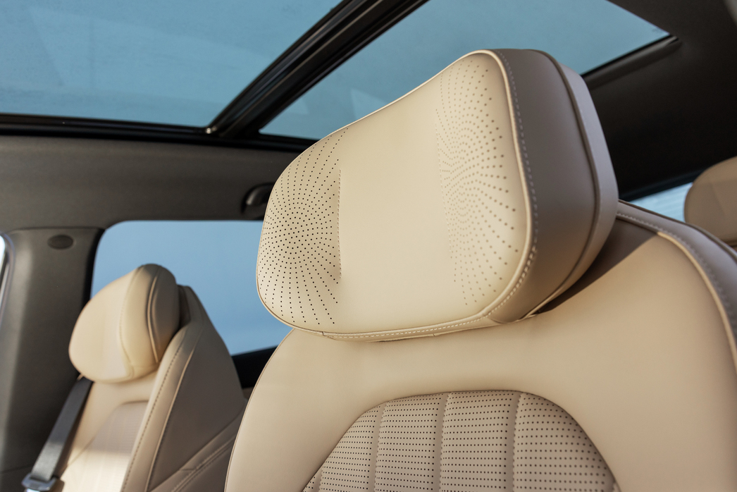 Цветов салона на выбор два: чёрный и бежевый. Потолок при этом может быть только чёрным — тоже одна из последних тенденций автомобильной моды. Панорамная крыша предусмотрена не только в старшей, но и в младшей комплектации (их всего две), что не может не радовать. Она визуально добавляет еще больше пространства, которого, впрочем, и так вполне хватает. Дополнительные 10 мм для ног и 23 мм над головой на заднем ряду — цифры вроде бы скромные, но разница реально чувствуется. На диване комфортно даже рослым пассажирам: ужиматься и мириться с упирающимися в спинку коленями не придется.