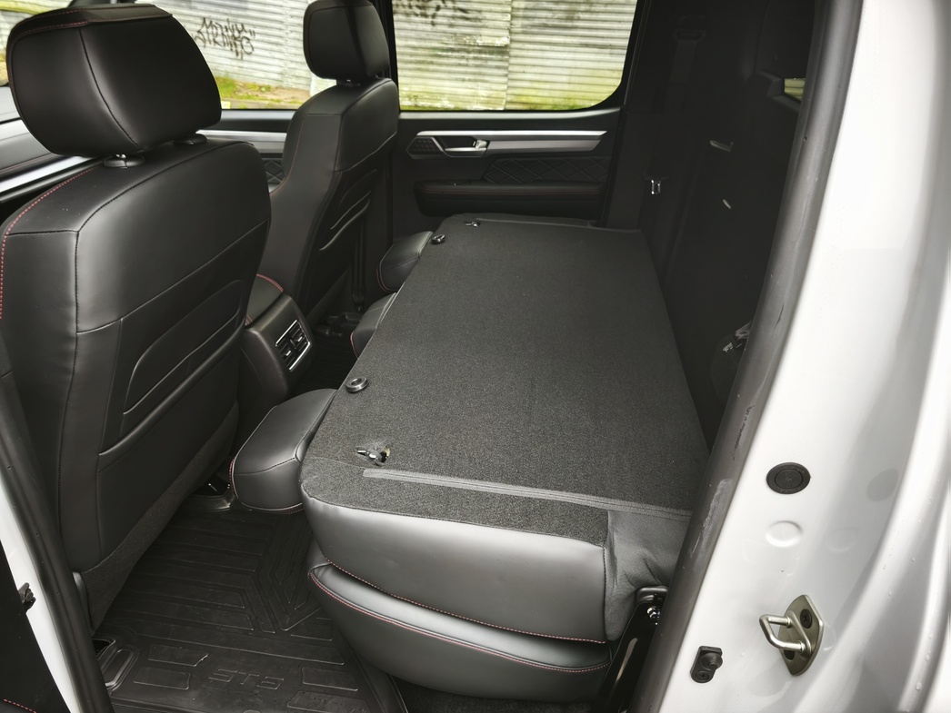 Ниже в консоли — отсек с индуктивной зарядкой, в широченном подлокотнике — охлаждаемый бокс. В общем — как будто бы нормальный семейный SUV, только с отдельным кузовом, который, кстати, можно прикрыть опционными герметичными крышками.