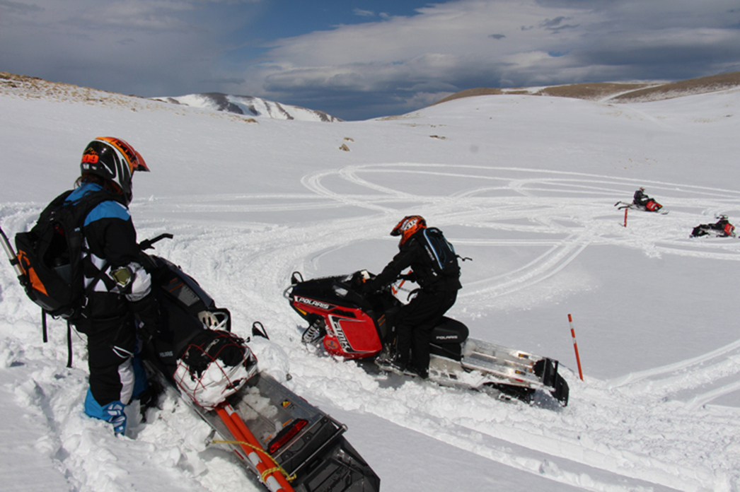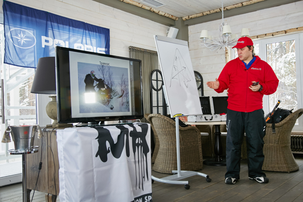 Впрочем, хватит лирики, пора уже «пилить склоны». Перед выездом инструктор дает часовую лекцию по безопасности и вкратце напоминает теорию по управлению снегоходом в горах. Эта часть занятий в школе пусть и не самая увлекательная, но без понимания того, что может с тобой или твоими коллегами произойти на склоне, и как надо действовать, чтобы вернуться живыми, просто не обойтись.