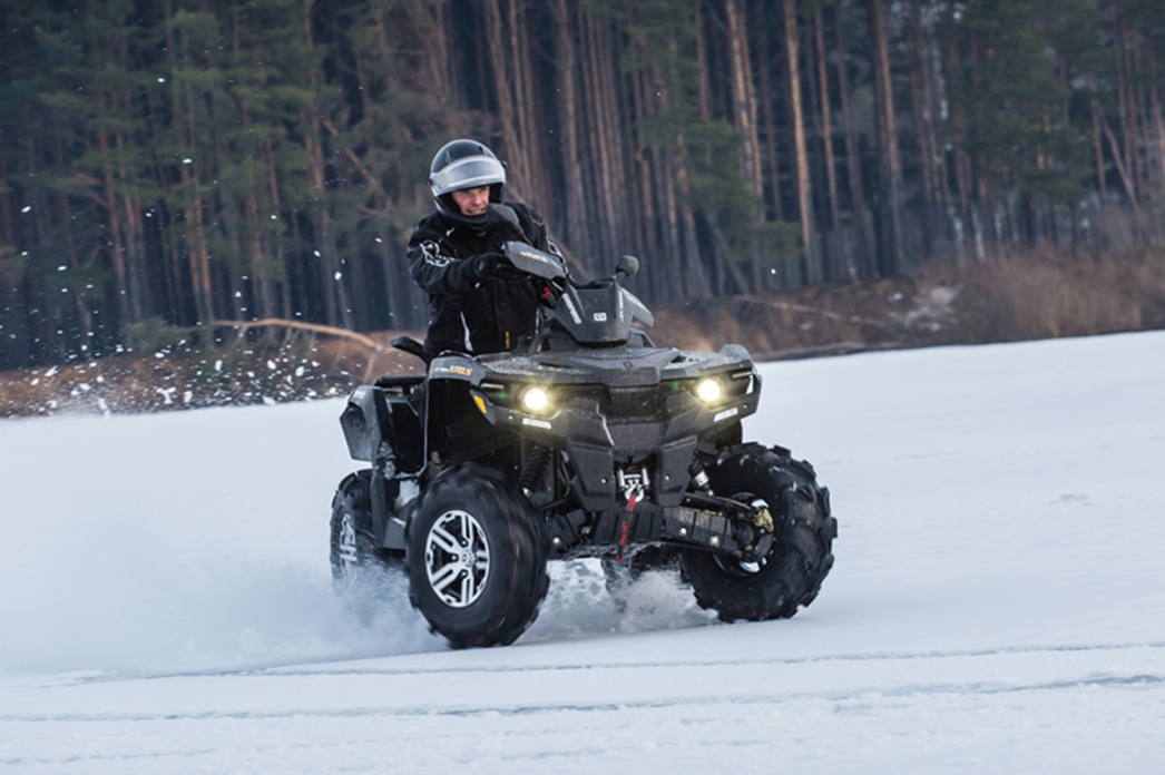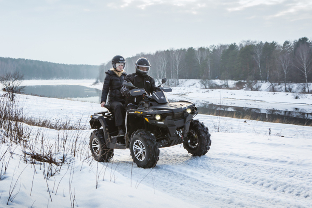 Высокий, широкий, с каким-то уму не постижимым клиренсом (от нижней части подножки до земли – 41 сантиметр)... В общем, полное впечатление, что оседлал арабского скакуна, а не мотовздеход. Прежде чем куда-либо ехать, осваиваемся на месте пилота. Сидушка мягкая, в меру широкая, в общем, нет ощущения кавалеристской пасадки. Высота руля, расстояние между левой и правой ручками, угол наклона колонки тоже вызвали приятные эмоции, потому как рулить удобно и из положения сидя, и из положения стоя.