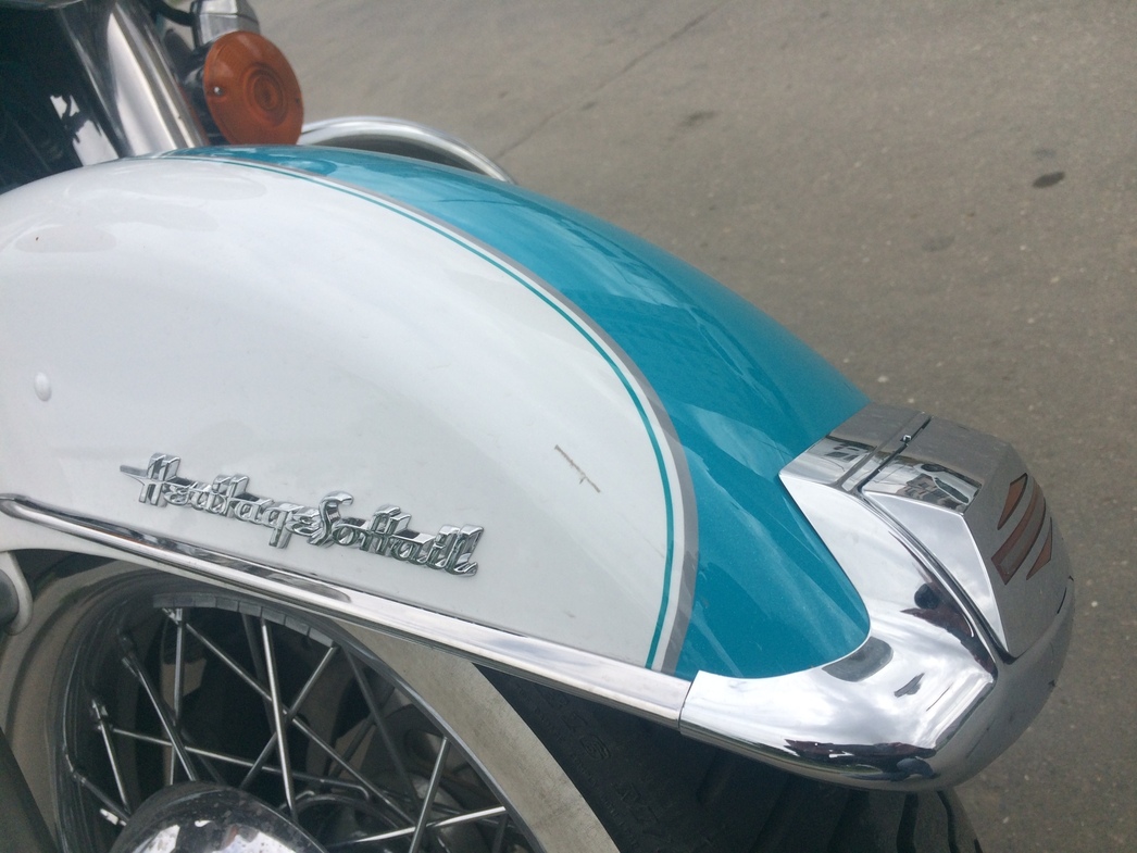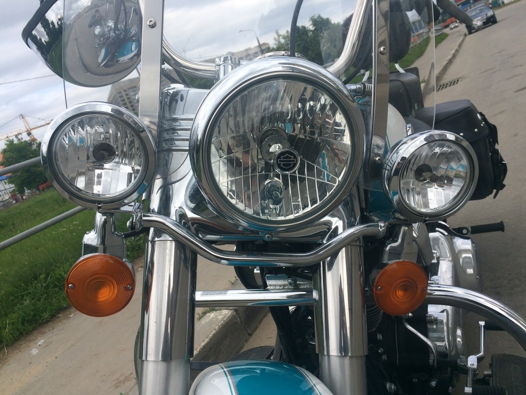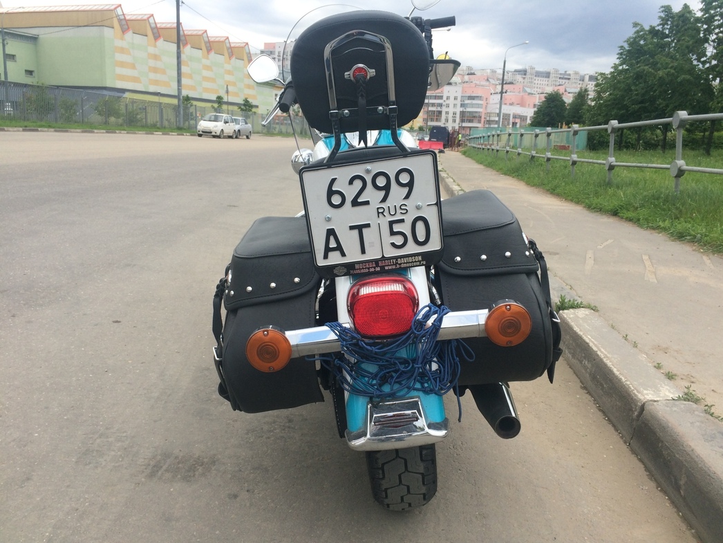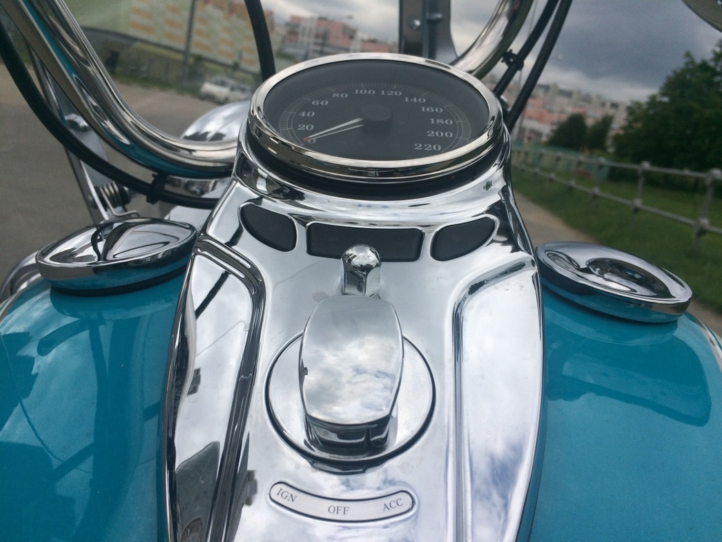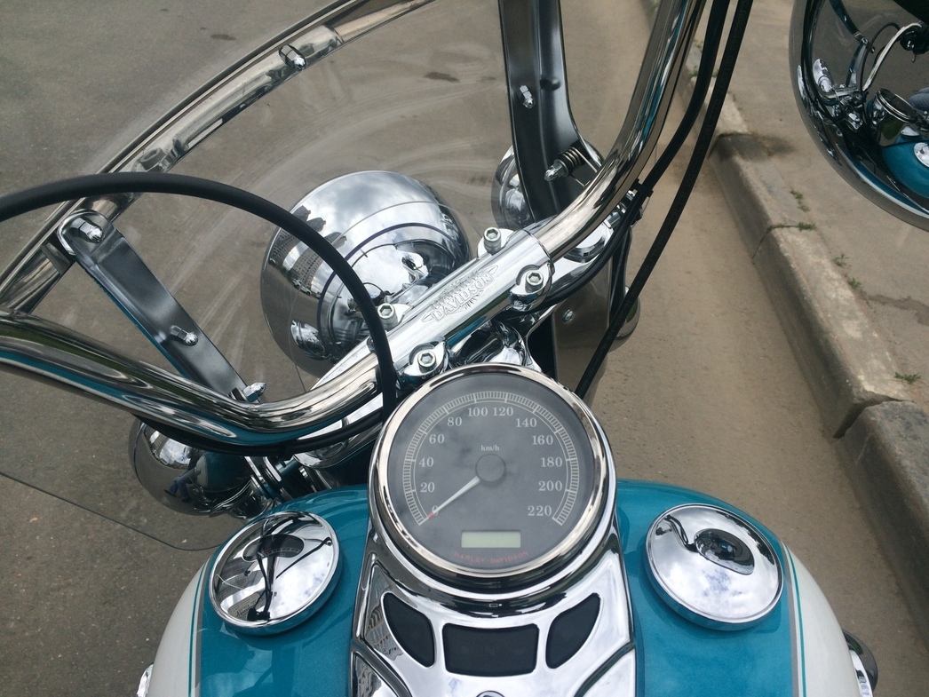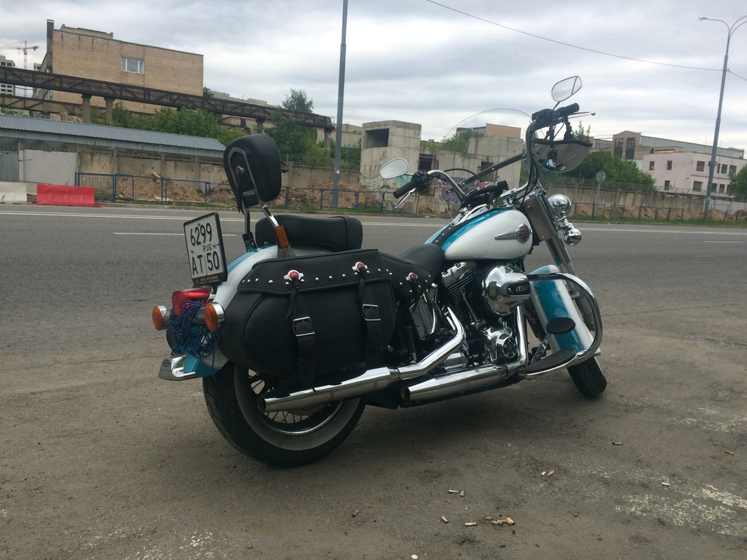 По иронии судьбы, во время проезда московского района Чертаново, небеса разверзлись и на наши головы рухнул поистине чертовский ливень. «Оторваться» от грозы удалось лишь через несколько километров после пересечения МКАД. Каково же было мое удивление, когда, сняв с себя амуницию и развесив ее на руле для просушки, при осмотре самого мотоцикла я вдруг обнаружил, что он практически не испачкался! Чего нельзя было сказать про транспортное средство моей спутницы — ее железный конь покрылся изрядным слоем дорожной грязи. Отгадка кроется в тех самых больших крыльях, которыми оснащен Heritage Softail: они отлично справляются со своим делом и мотоцикл фактически не забрасывается грязью из под собственных колес. То есть получается, что Softail просто намокает, а потом высыхает, ибо жар, идущий снизу от двигателя, работает по типу фена для волос.