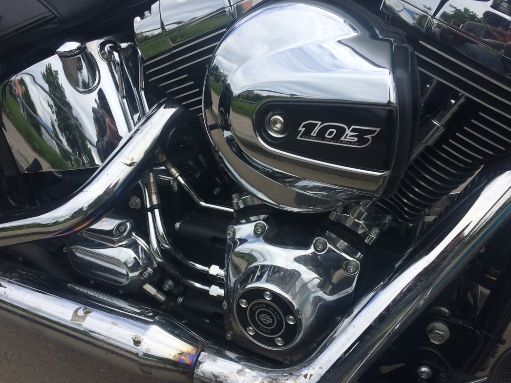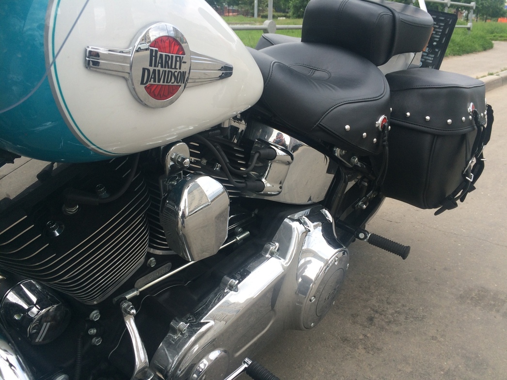 Так совпало, что на период тест-райда выпал первый серьезный выезд в сезоне – «Bikers Brothers Festival» в подмосковном пансионате «Бор». Туда-то мы и отправились с нашим новым приятелем. В боковые кофры, которые, как уже отмечалось, оказались очень вместительными, влезли два дополнительных комплекта одежды, несколько бутылок воды и кое-какая провизия на всякий пожарный. Ну все, собрались. Поворот большой «блямбы» на бензобаке, кнопка Start – и подо мной ожил старый добрый «103-й» двухцилиндровый мотор воздушного охлаждения. Тух-тух-тух-тух — так с вибрацией дышит Харли, подрагивая всем телом и боковыми зеркалами. Выжимаю сцепление, нажимаю на рычаг и со смачным щелчком затвора автомата Калашникова включается первая передача. Softail удивительно послушен и плавен, управлять им совсем несложно, с этой задачей легко справится даже девушка. Как только мотоцикл трогается с места, его большая масса (существенно выше 300 кг) словно испаряется и большой байк превращается чуть ли не в велосипед. Несмотря на широкие подножки-платформы, на Heritage можно довольно легко и уверенно маневрировать, в том числе и в междурядье. На минимальной скорости и самых малых оборотах мотоцикл приходится слегка корректировать рулем, однако к этому быстро привыкаешь и подобный процесс совсем скоро не вызывает ни дискомфорта, ни раздражения.