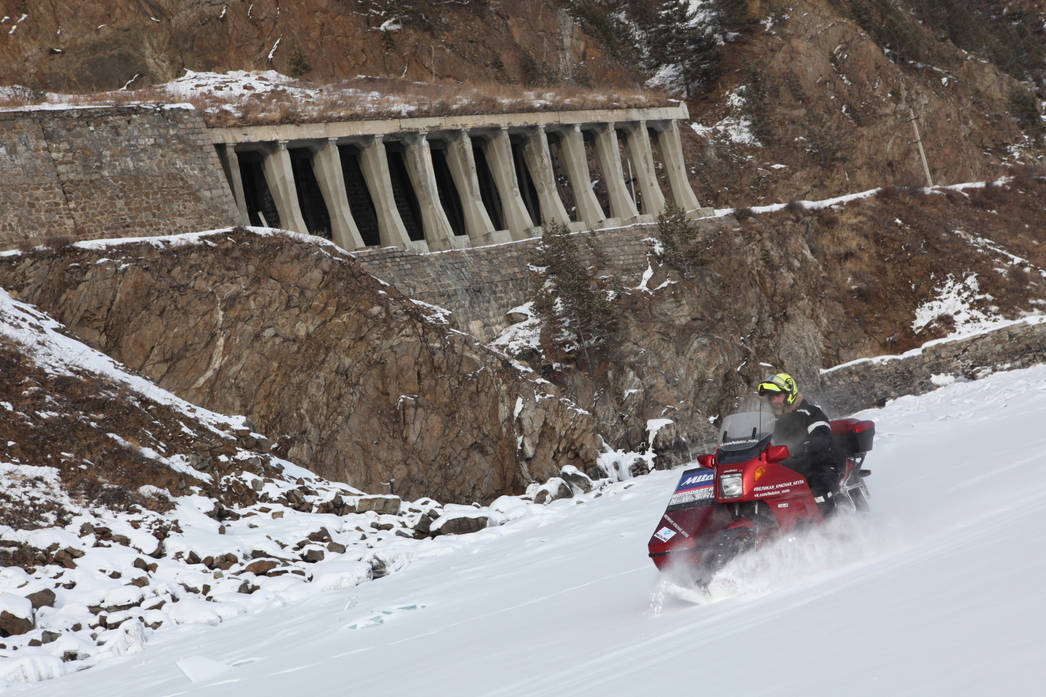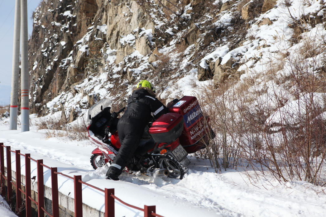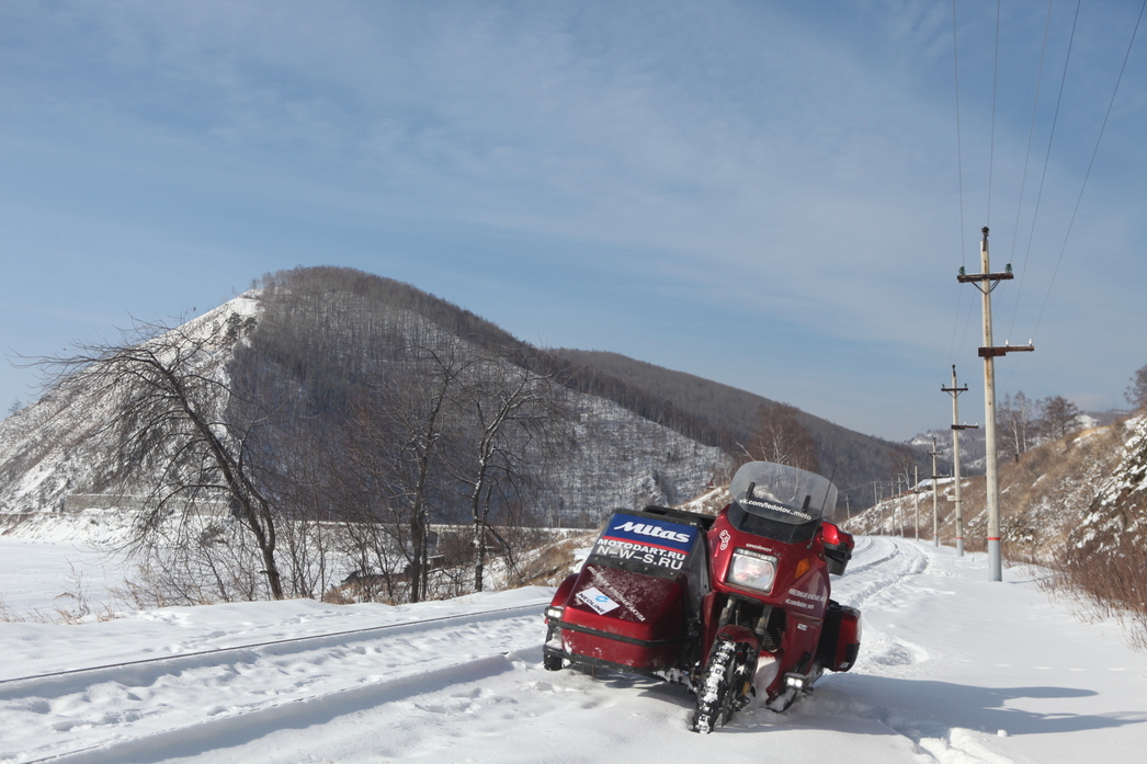 Кругобайкальская железная дорога не далась проще. И пусть обилие снега не стало большой проблемы для кроссовой зимней резины Mitas,в которую был обут мотоцикл, проблемы подкрались с другой стороны. Дело в том, что железная дорога, строившаяся в конце девятнадцатого века как однопутная, позже была расширена вторым путем, построенным параллельно первому. Со временем дореволюционный путь забросили, а редким поездам достался «новый» путь, в то время как старый, изобилующий тоннелями, мостами и эстакадами, фактически превратился в дорогу, доступную если не для автомобиля, то как минимум для мотоцикла с коляской.
