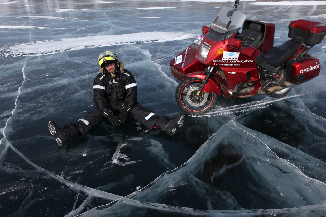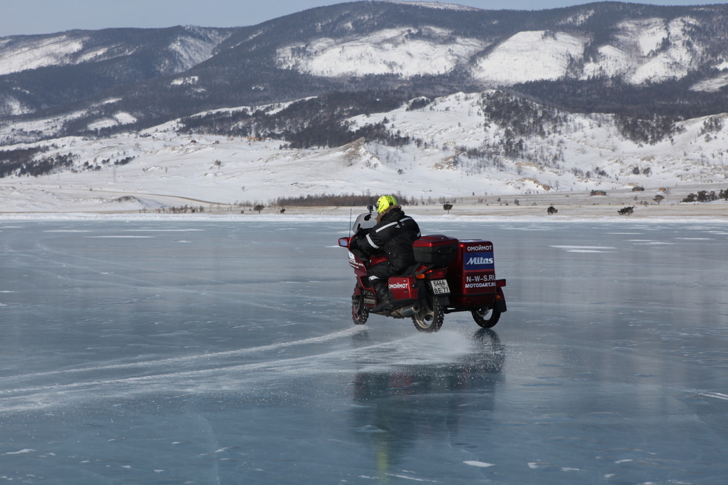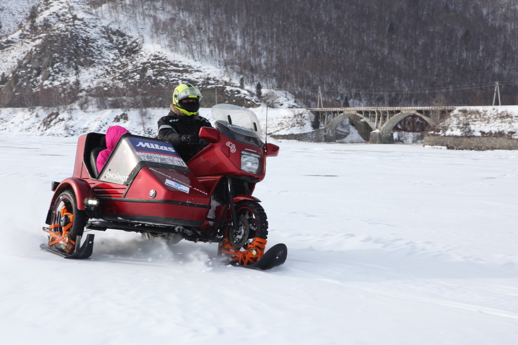 К слову, рекорд вышел весьма скромным: всего 94,8 км/ч, в которые мотоцикл уперся из-за недостаточного количества шипов. А ведь на асфальте этот же BMW K1100LT с коляской Velorex 700 легко выдавал 160! С другой стороны, быстрее на «колясыче» по Байкалу все равно никто не ездил, а у нас появился пусть и сомнительный, но опыт. Впрочем, главными стали не рекорды, а эмоции, сравнить которые мне совершенно не с чем.