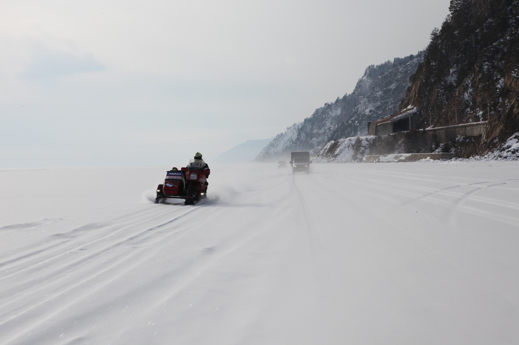 Летом у Кругобайкалки альтернативы нет — на автомобиле подъехать можно лишь к поселкам, расположенным у ее начала и конца, зато зимой местные прокладывают импровизированный зимник по льду, которым мы и решили воспользоваться. Байкальский лед при всей его неимоверной толщине, которую он набирает к концу зимы, обманчив: многокилометровые плиты льда постоянно движутся, то сталкиваясь, образуя высоченные и острые заборы торосов, то, напротив, разъезжаясь на несколько метров, создавая полыньи открытой воды.