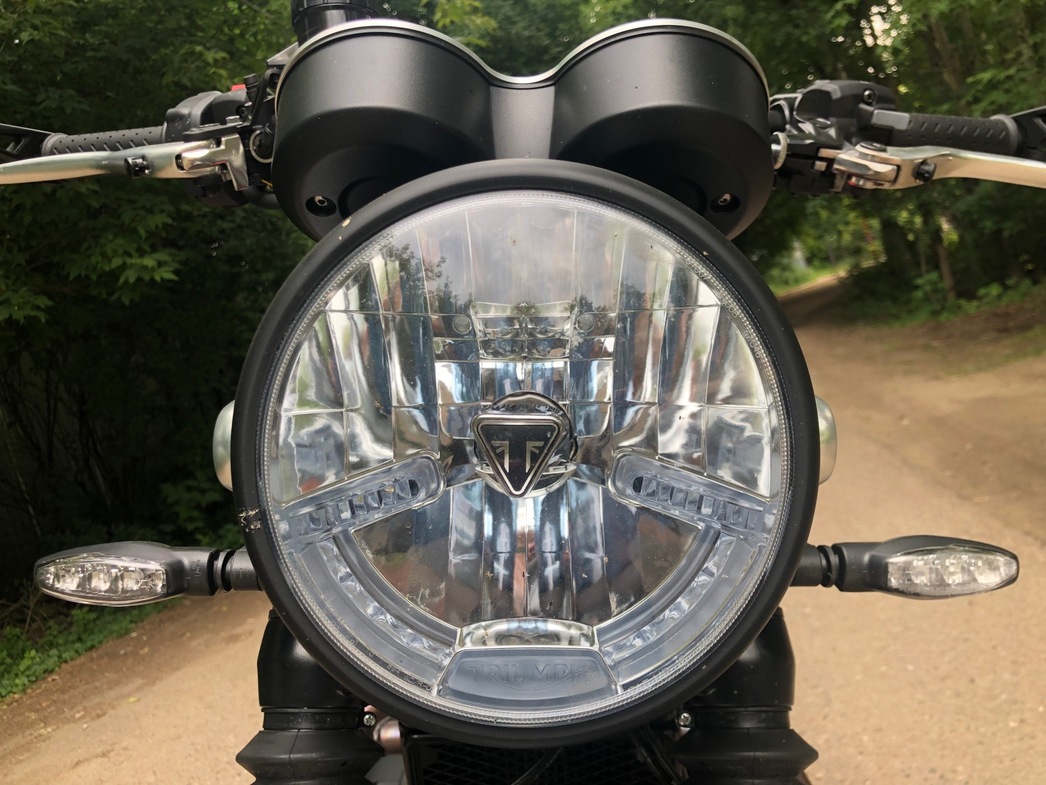 Надо сказать, что Triumph Speed Twin, имея в своем арсенале современный двигатель, коробку передач, подвеску и три режима электронной настройки двигателя — Rain, Road и Sport, сохраняет в себе классические олдскульные черты. Это и большие круглые аналоговые приборы, спидометр и тахометр, классические круглые зеркала, прямое словно лавка седло.