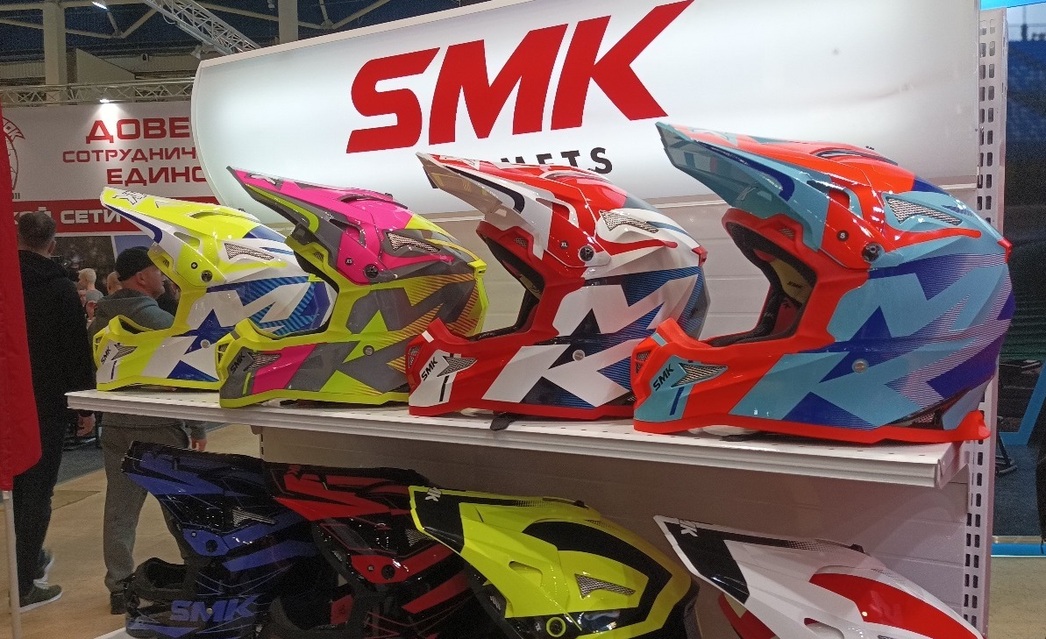 На выставке дистрибьюторы SMK показали несколько новых шлемов серий GTJ и Allterra, у каждой из которых свои особенности. Так, модель GTJ имеет выдвижной широкоугольный визор для достижения максимального обзора и безопасности на дороге. Новинку отличает также эффективная система вентиляции, что обеспечивает комфорт во время длительных поездок.