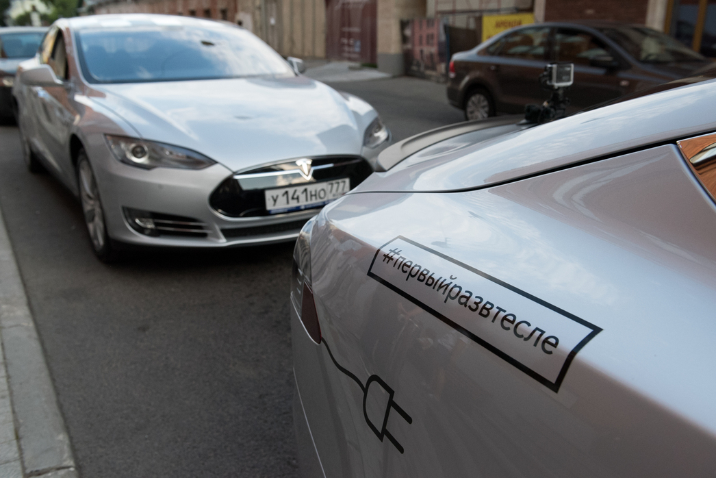 Окружающие «не видят» на пассажиров. Тем более, что обе Tesla соответствующим образом брендированы. Их больше занимает сам автомобиль.