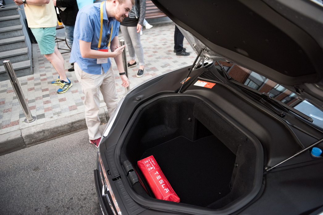 Все было честно: две первые поездки на такси Tesla были разыграны в своеобразной лотерее, и автор этих строк оказался одним из двух счастливчиков. Коллег, в общем-то, тоже не обидели, так как, прежде, чем отвезти победителей водители прокатили желающих по окрестным улицам, другое дело, что до дома им все же пришлось добираться своими силами.