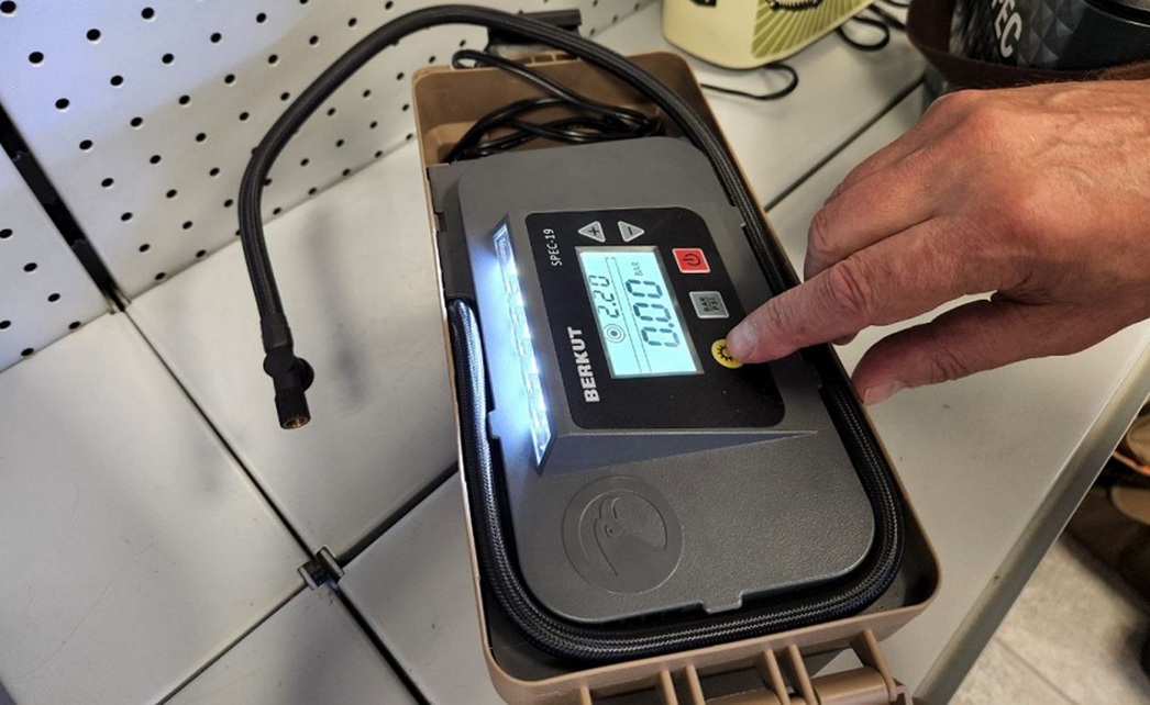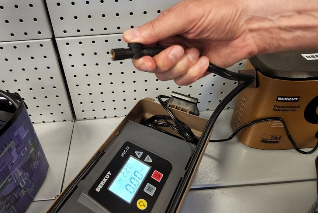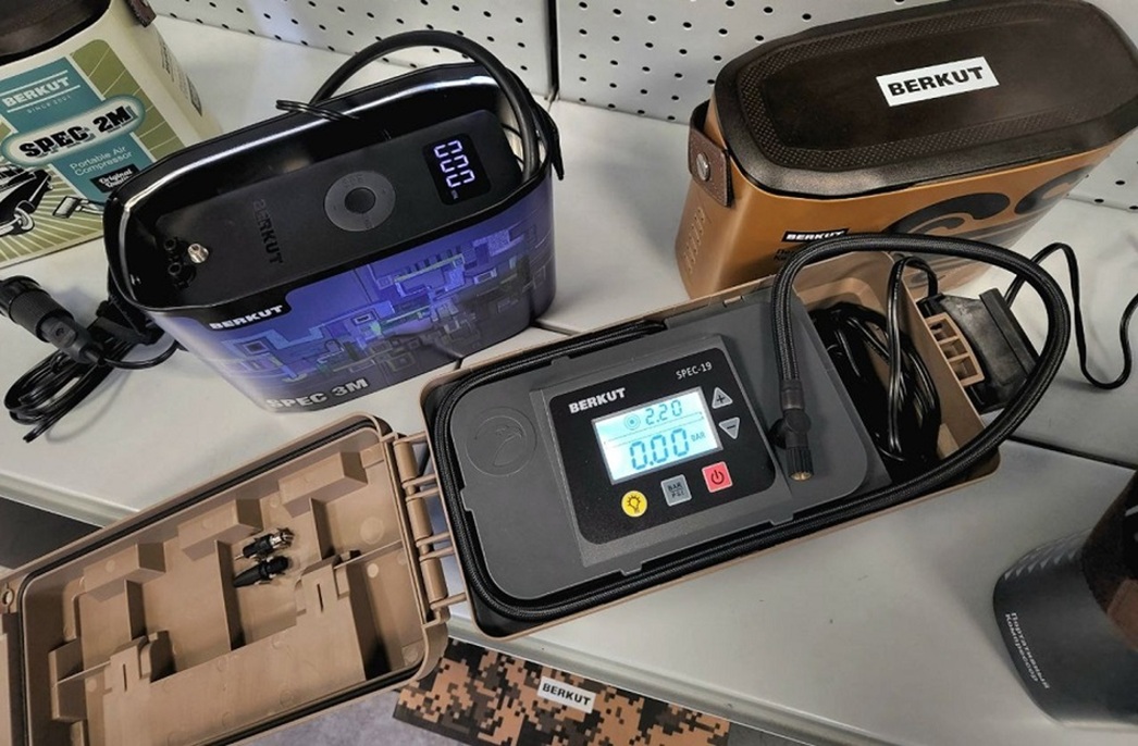 Особого внимания среди новинок от Berkut заслуживает самая производительная модель, обозначенная индексом SPEC−19. Агрегат отличает интуитивно понятное электронное управление и цифровой манометр с функцией «автостоп», когда при достижении заданного давления компрессор сам отключается. Аппарат снабжен 2-поршневым нагнетателем, сам он запитывается через розетку прикуривателя и имеет пониженное (не более 13 А) потребление тока.