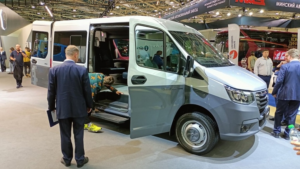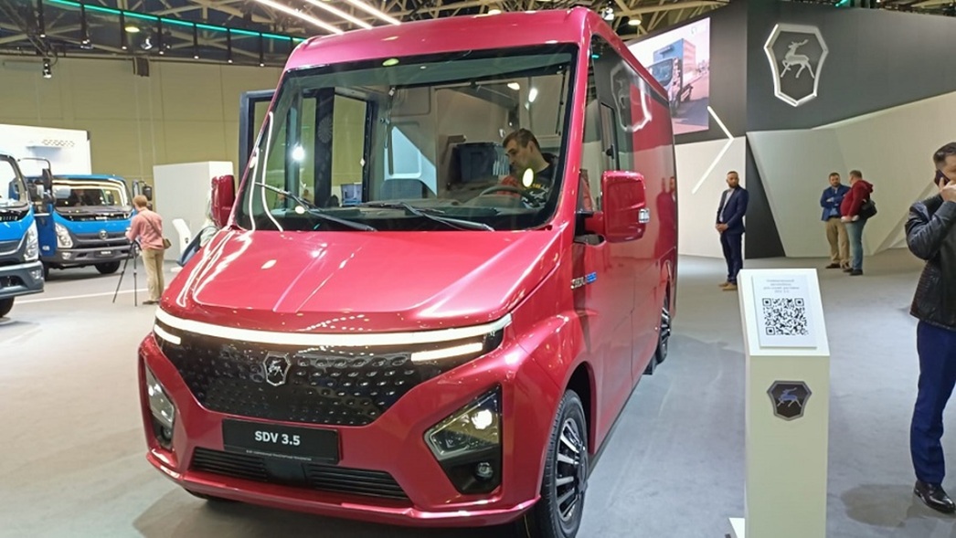 Особое внимание в экспозиции ГАЗа было уделено концептам. В их числе стоит отметить электромобиль SDV 3.5 — первый в России низкопольный фургон с многофункциональным грузовым отсеком для служб доставки. На его фоне совсем необычно смотрелся электрический беспилотник. Выглядит как транспортер, но без кабины. В перспективе планируется для использования в аэропортах, складских территориях, заводах и т. п.