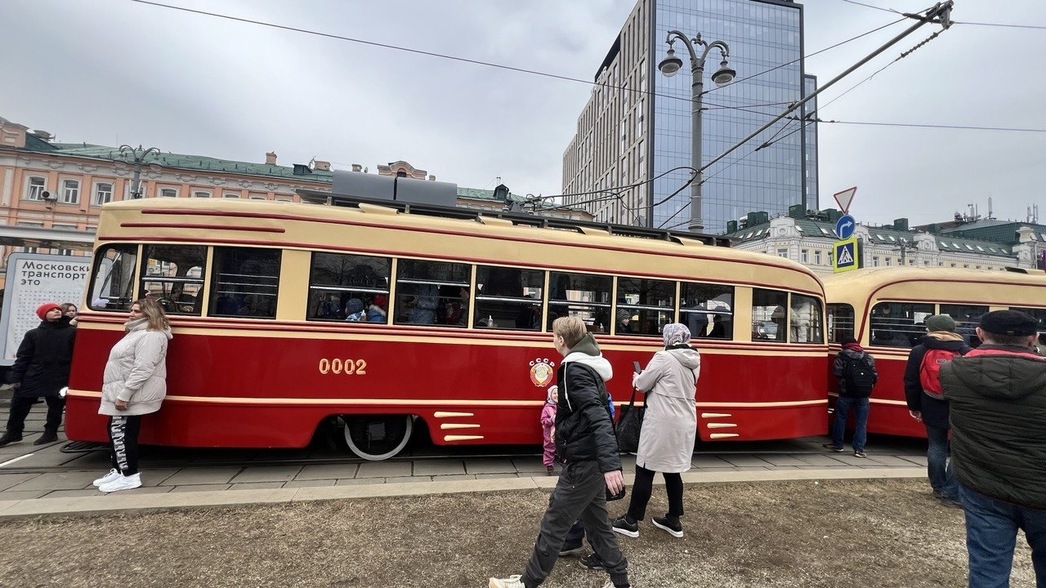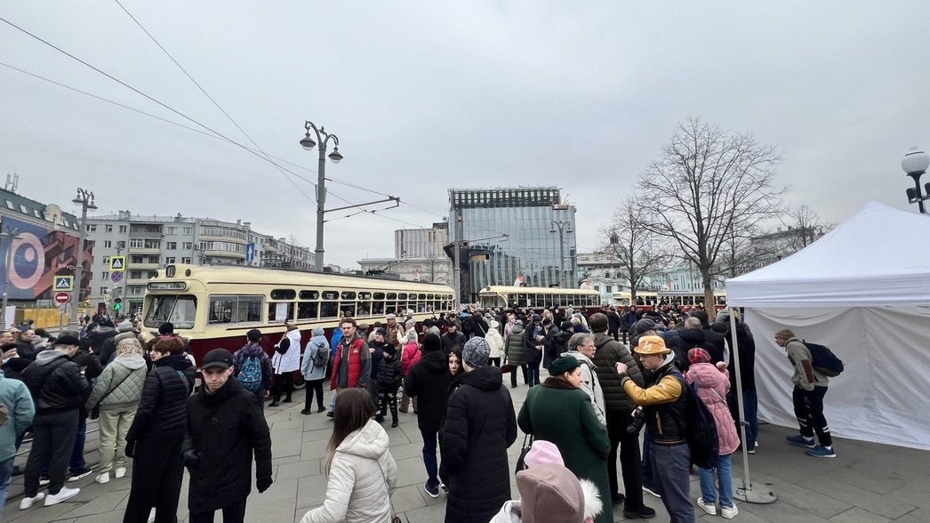 Выехав из депо имени Русакова, трамваи прошли через Сокольники и до площади Белорусского вокзала под бдительным контролем вагоновожатых в аутентичной форме тех лет. На конечной точке маршрута трамваи выстроились на разворотном кругу, представ во всем великолепии пред Максимом Горьким и многими сотнями посетителей, которых промозглое апрельское утро субботы не остановила от посещения мероприятия. Судя по числу гостей, праздник удался!