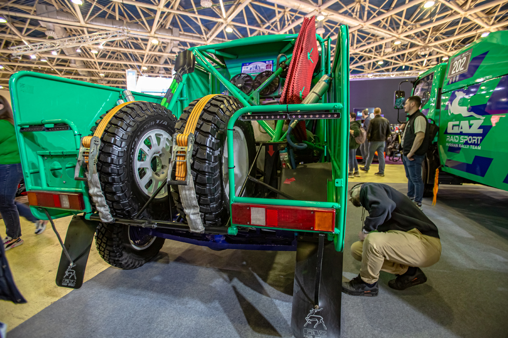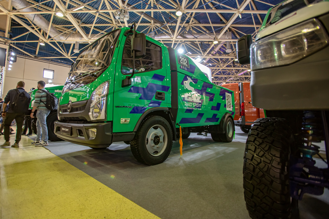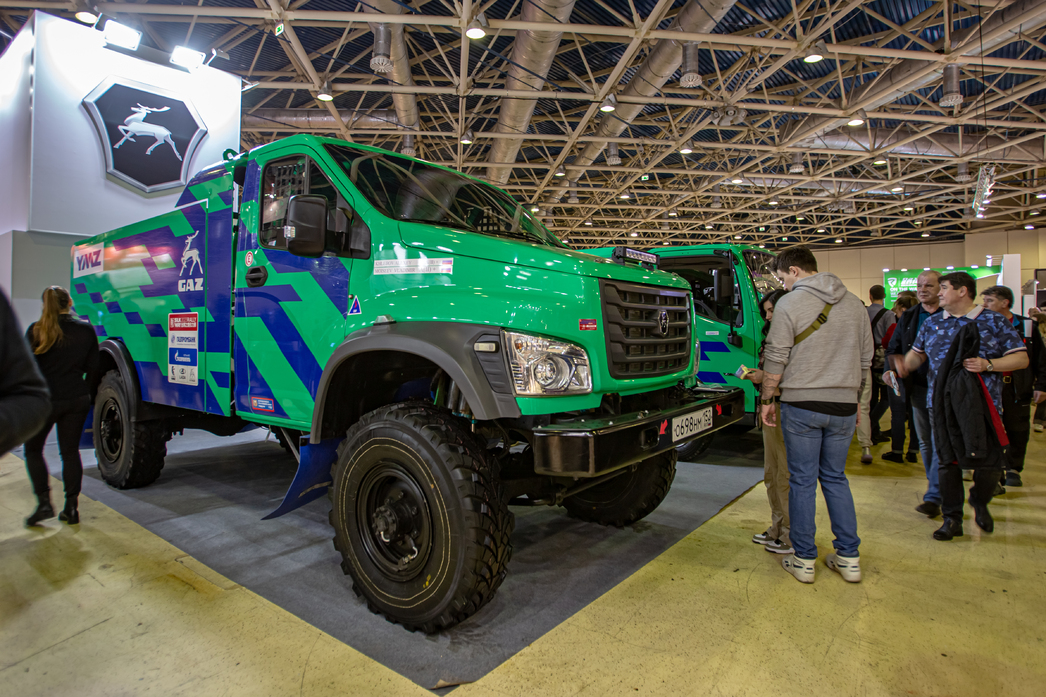 Например, гоночная команда «ГАЗ Рейд Спорт» выставила почти полный состав своих боевых прототипов: и «Газель», и «Валдай», и «Газон» можно было увидеть в одном месте. Для полного комплекта не хватало только «Урала» — видимо, не влез на стенд.