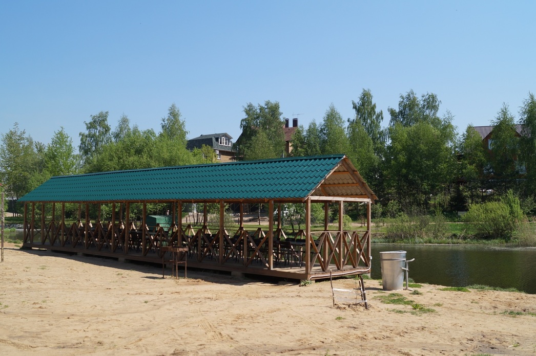 Конечно, лежаков и топчанов вы здесь не найдете, поэтому запасайтесь пляжными полотенцами заранее. Зато никто не воспрещает развести на берегу костер и воспользоваться привезенным с собой мангалом (какой мангал лучше выбрать, можно прочесть здесь). Если же собственной коптильни нет, ее можно арендовать за 500 рублей. Еще тут славные вместительные беседки, укрытые антимоскитной сеткой – комаров у воды ближе к вечеру полно. Веранда на 4-6 человек обойдется в 2500 рублей в сутки. Из других прелестей жизни – бар на воде, бадминтон, волейбол и настольные игры.