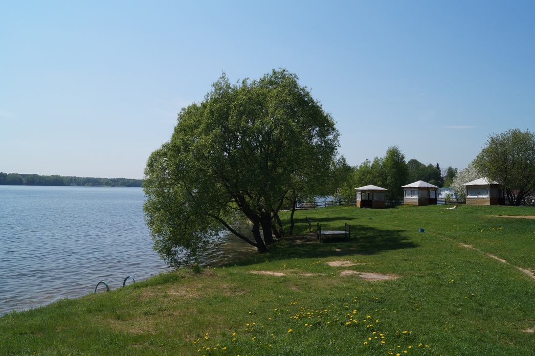 Проезжая Пироговский, держитесь левого поворота на «Пансионат» и вы на месте. Вход – свободный, а вот за парковку придется заплатить 150 рублей. Как и в первом случае, здесь можно снять открытую беседку у воды, либо в лесу, самая дешевая из которых обойдется в 4000 «деревянных». Есть даже прибрежный банкетный зал за 11 000 рублей. Кстати, прекрасный вариант отпраздновать день рождения на природе или просто скрасить досуг в большой компании. Тем более, что при этом всю еду и напитки можно привезти с собой. Не рассчитаете – запасы всегда пополнит местный ресторан. Для полного счастья можно заказать баньку на дровах с апартаментами и собственным выходом на воду. Правда, пустует она редко, поэтому бронировать лучше недели за две.