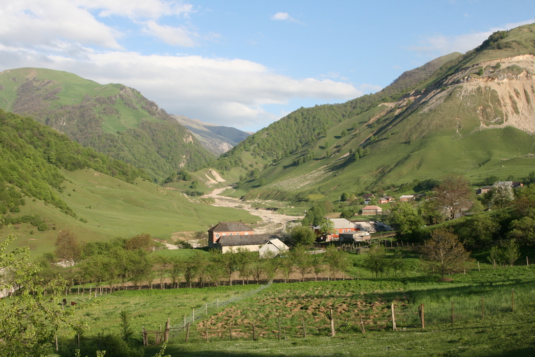 И вот въезжаем в село Харачой – крайнюю точку цивилизации. Далее придется в буквальном смысле карабкаться по горам. Село расположилось в своеобразной «чаше» – маленькой долине, со всех сторон окруженной скалами. Горную дорогу видно снизу – она по нескольку раз петляет вокруг каждого склона. Значит впереди утомительный подъем. На выезде из села – хорошо оборудованный бетонный блокпост. Уже часа четыре вечера и надо торопиться – хочется поснимать озеро при дневном свете. На блокпосту честно признаемся в этом намерении. Про КТО спрашивать не решаемся – вдруг развернут. Водителя записывают в «журнал посещений» вместе с машиной и нас пропускают. Немаловажный нюанс для разъездов по Чечне – не надо ничего врать на блокпостах. У полицейских подсознательная тяга к прекрасному и выражение «еду в горы на фотоэтюды» для них в монотонной солдатской жизни – как бальзам на душу. Не все же по горам с автоматом за «шайтанами» бегать. А вот разговоры про «еду на свадьбу» или «еду к другу», могут вызвать множество расспросов. Тем более, что полицейские, как правило, местные, и все про всех знают. Под их одобрительные взгляды трогаемся и тут же останавливаемся – перед нами настоящая родовая башня, у которой нельзя не сфотографироваться. Они во множестве стоят вдоль дорог и на равнине, но то – стилизованные новоделы. Реальные древности можно увидеть только в горах.