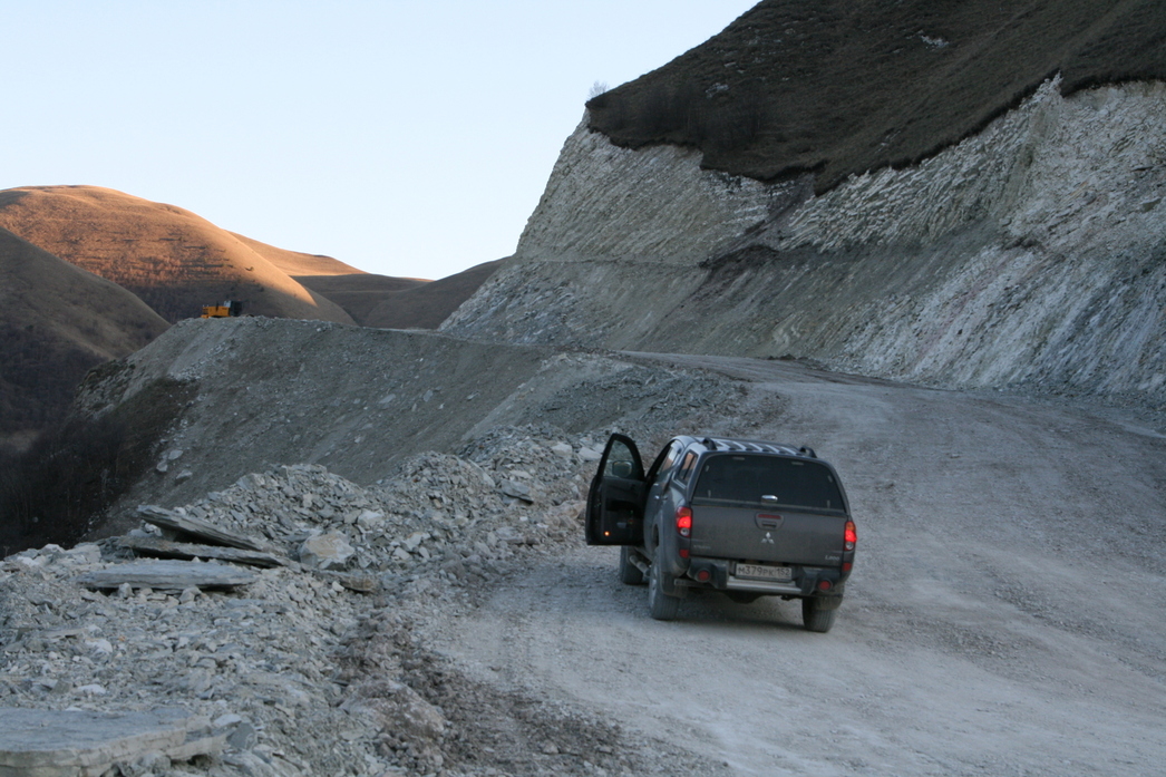 Ехать в Веденский район лучше через Аргун, на въезде в который можно полюбоваться знаменитой Золотой мечетью в окружении небоскребов. Прямо напротив нее кольцевая развязка, на которой, несмотря на постоянно дежурящих здесь гаишников, никто не обращает внимание на ПДД – все едут, как хотят. Нам нужно сразу же на первый съезд, но в силу броуновского движения на кольце приходится выезжать на Гудермес. Ничего страшного – лишний круг получается менее километра. Объезжаем его по улочкам Аргуна, сильно отличающихся от пафосного центра, и выезжаем на дорогу в Шали. Здесь, несмотря на знаки ограничения, все несутся как бешеные. Увы, долго это не длится – на въезде в Шали стоит толпа людей с оружием. Удивительная особенность Чечни – военные операции проводятся пафосно и демонстративно. Въезд в село закрыт и никого туда не пускают. Даже местных. Те столпились на дороге табором из полусотни машин. Кто-то уже разложил на капоте закуску и приглашал других водителей к столу – люди здесь открыты и гостеприимны. Мы на своем Mitsubishi L-200 тоже было встали, но после небольшого совещания решили рискнуть и пробиться ближе к объездной – вдруг проедем?