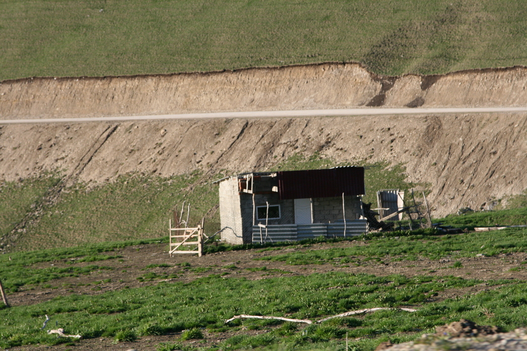 Хотя нам нужно было проехать около 40 километров, из-за постоянного петляния по горам дорога растянулась. За весь путь мы увидели лишь одно жилое строение и вагончик для намаза. Так же встретили одинокого джигита на коне, который с большим интересом смотрел на наше авто. Я бы сказал, даже облизывался. А у единственного указателя свернули не в ту сторону и заблудились. К счастью, поняли это довольно быстро, километров через пять... А правило для потерявшихся в горах одно – ждать, пока кто-нибудь не проедет мимо. Иначе можно потеряться окончательно.