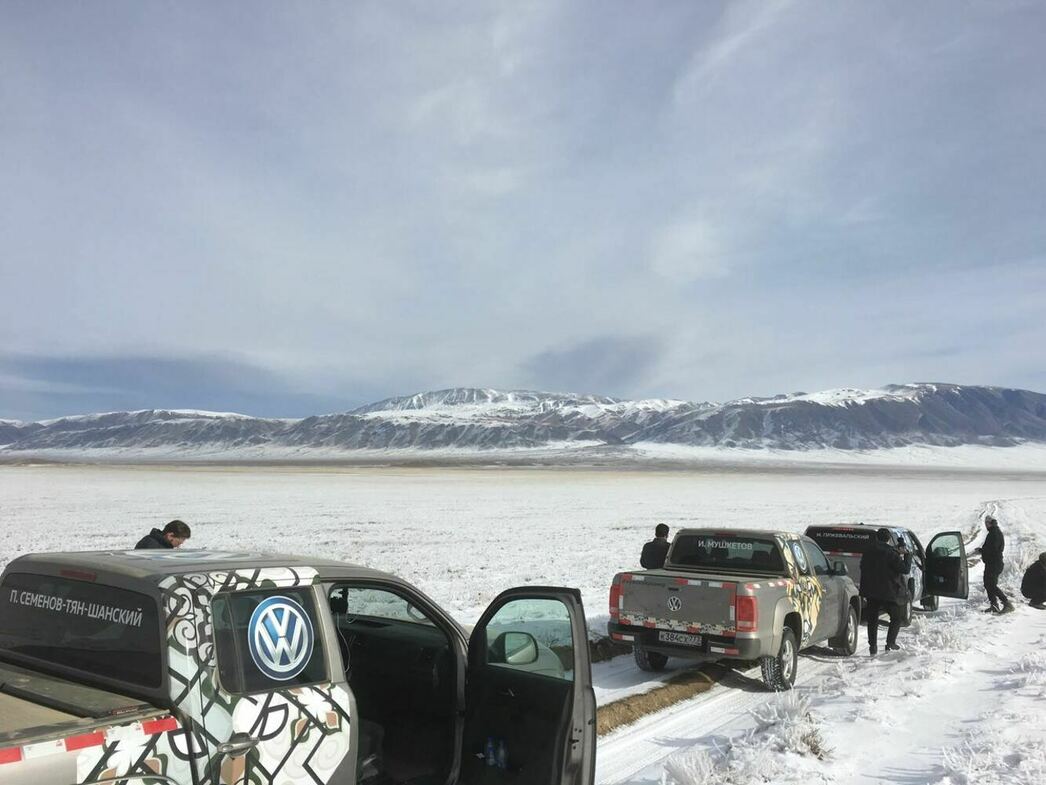 Впрочем, пора вернуться к собственно трансазиатской эпопее «Амароков». На шести обновленных моделях и двух старых мы взяли на ура пару перевалов. Не памирских, понятное дело, но очень похожих по сложности прохождения. Первые снега сменялись полевыми бурями, гололед замерзших рек — прихваченной льдом грунтовкой, неожиданно окутавшей экспедицию саваном непроницаемой даже для противотуманок пыли.