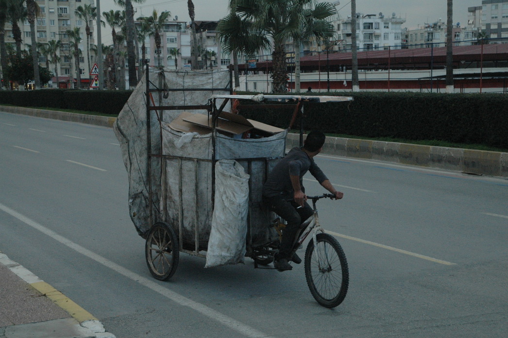 Главной точкой нашего маршрута стал Мерсин — крупный портовый город на берегу средиземного моря. Пальмы, теплое море, в котором я успел искупаться, апельсины на деревьях, Эдем! Однако сумасшедший трафик с невменяемыми водителями маршруток, неопрятность и засилье сирийских беженцев, недружелюбно настроенных к русским, так и не позволили расслабиться окончательно. Да и грязные улицы вместе с местными пройдохами, пытающимися тебя обсчитать при первом же удобном случае, произвели гнетущее впечатление, как и местные бомжи, рассекающие, в зависимости от уровня достатка, на велосипедах и мотоциклах с колясками, в которых закреплены огромные, высотой под полтора-два метра, мусорные мешки.