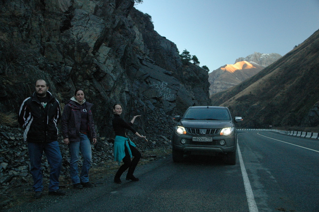 Ночь в пути, плотнейший, как молоко, туман, разбитый асфальт второстепенных дорог, выбираемых слепым навигатором, и уже утром мы оказались у подножия гор, во Владикавказе. Границу проскочили минут за сорок, перевал Военно-Грузинской дороги, славящийся своей переменчивой погодой, оказался открыт, но только лишь для легковых автомобилей. Пробка из фур, растянувшаяся на добрый десяток километров, однозначно дала понять — кому-то повезло меньше, чем нам, а саму дорогу расчистили совсем недавно.