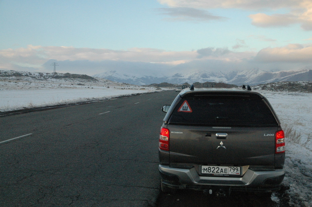 Увы, короткая дорога не всегда оказывается быстрой — перевал, через который проложил дорогу навигатор, сначала насторожил низким трафиком, затем окончившимся асфальтом, крупными, совсем недавно упавшими на дорогу камнями и снегом. Сначала не сильным, а затем таким, что пришлось задействовать весь внедорожный потенциал нашего L200, включив понижайку и заднюю блокировку. И снова повезло — уперлись в буксовавший ГАЗ-63, люди из которого поведали, что дальше снега лишь больше и проехать тут нельзя. Пришлось развернуться и, сделав крюк в 200 километров, вернуться на скоростное шоссе, поехав длинной, но верной дорогой.
