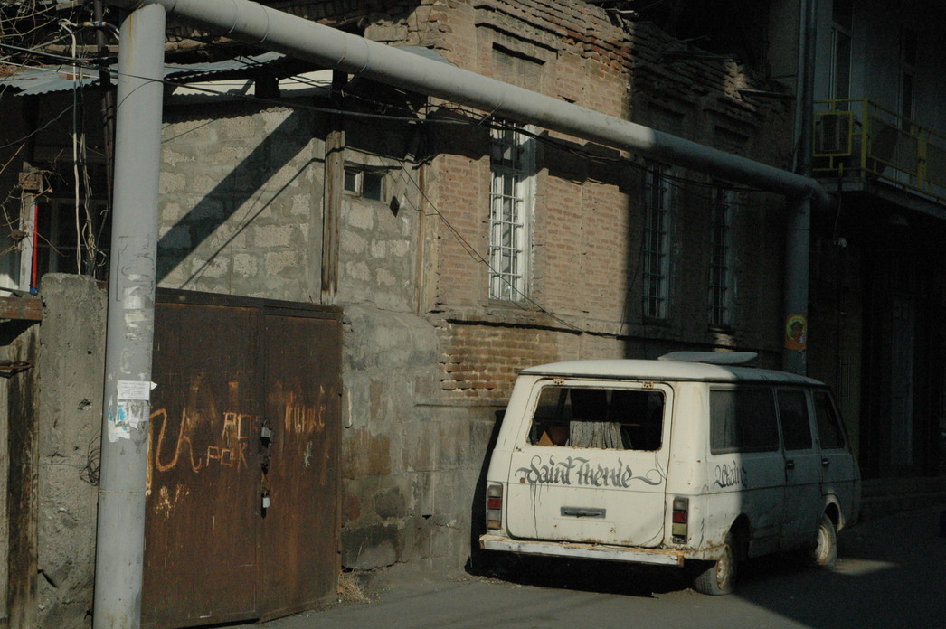 Позарившись на разницу в стоимости топлива, выехали из Грузии налегке. Увы, низкий ценник, около 55 рублей за литр, еще не означает наличие топлива на заправке. Указатель уровня бился в истерике, мы двигались по горам, а на заправках, кои по пути к Еревану стоят на каждом углу, ни капли солярки. Перспектива замерзнуть в ночи не радовала, и в отчаянии мы свернули к площадке, на которой стояли грузовики и строительная техника. Тут-то точно есть! Запах дизеля витал в воздухе, а вот сторожа пришлось поискать. Именно он и спас нас, набулькав пять литров, которых нам хватило до нормальной заправки и со скрипом принявший от меня несколько местных купюр.