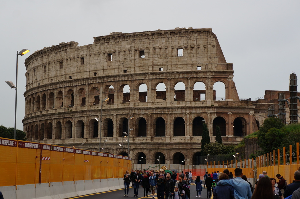 Столица Италии, увы, от нашей не отличается совсем: суета, безумный трафик, оголтелые мотоциклисты и полное отсутствие даже платных парковочных мест. Место для стоянки искали часа два, но так и не обнаружив ничего подходящего, отправились к выезду из города — вот она, Москва времен Лужкова! Бросив машину на окраине, сели в автобус, потом в метро и спустя час оказались прямо у Колизея.