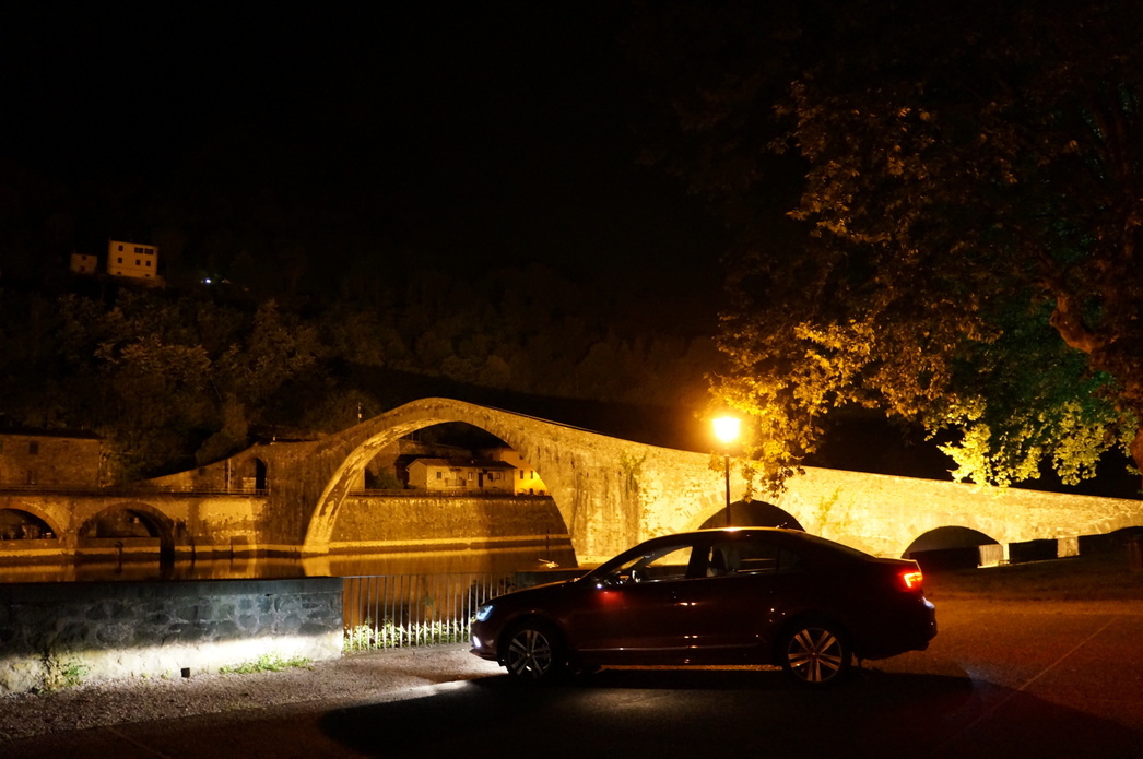 В Пизу же мы приехали к полуночи — туристический центр был на удивление пуст, оттого ни проблем с парковкой, ни с подходом к легендарной башне не возникло, да и подсвеченная в темноте она выглядит ничуть не хуже, чем днем. Прогулявшись по старому городу и убедившись, что на одной лишь башне красоты этого городка не заканчиваются, поехали дальше, в сторону Рима.