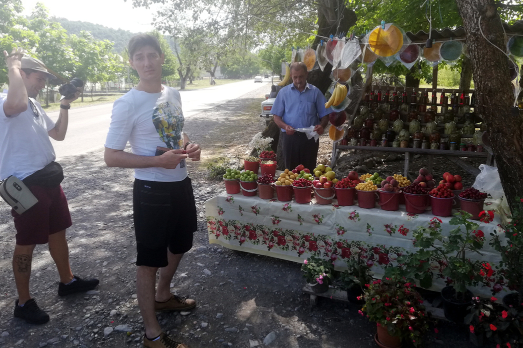 Не проехав и пары километров, напарник просит остановиться у придорожной палатки. Помните в Москве в начале-середине 90-хх повсеместно стояли убогие ларьки, сколоченные на скорую руку из ящиков из-под помидоров, фанеры, шифера и мутного стекла, выполняющего роль витрины. Похоже, эти трущобные магазинчики перевезли в Азербайджан. Как и тогда в Москве, в этих ларьках сейчас также можно круглосуточно купить абсолютно всё, как говорится от контрацептивов, до патронов. Причем, что поразило больше всего, в мусульманской стране, где алкоголь — это харам (запрет, говоря по-нашенски), купить водку или коньяк можно в любое время дня и ночи в любом количестве.